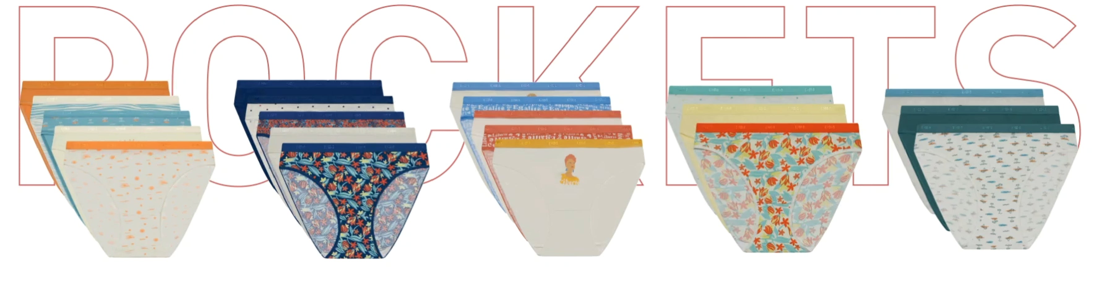 Venduto in pacchetti da 2, 3 o 5 in buste riutilizzabili e a partire da 15,99€. Sono disponibili in mutande di cotone, pugili da donna di cotone e anche perizoma o tanga !