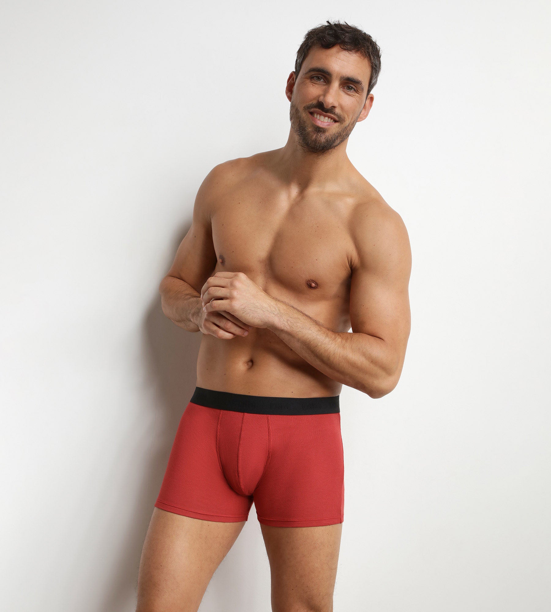 Punta su un tocco vivace con i boxer da uomo in cotone modal a coste rosso affascinante Dim Élégant, che uniscono morbidezza e carattere.