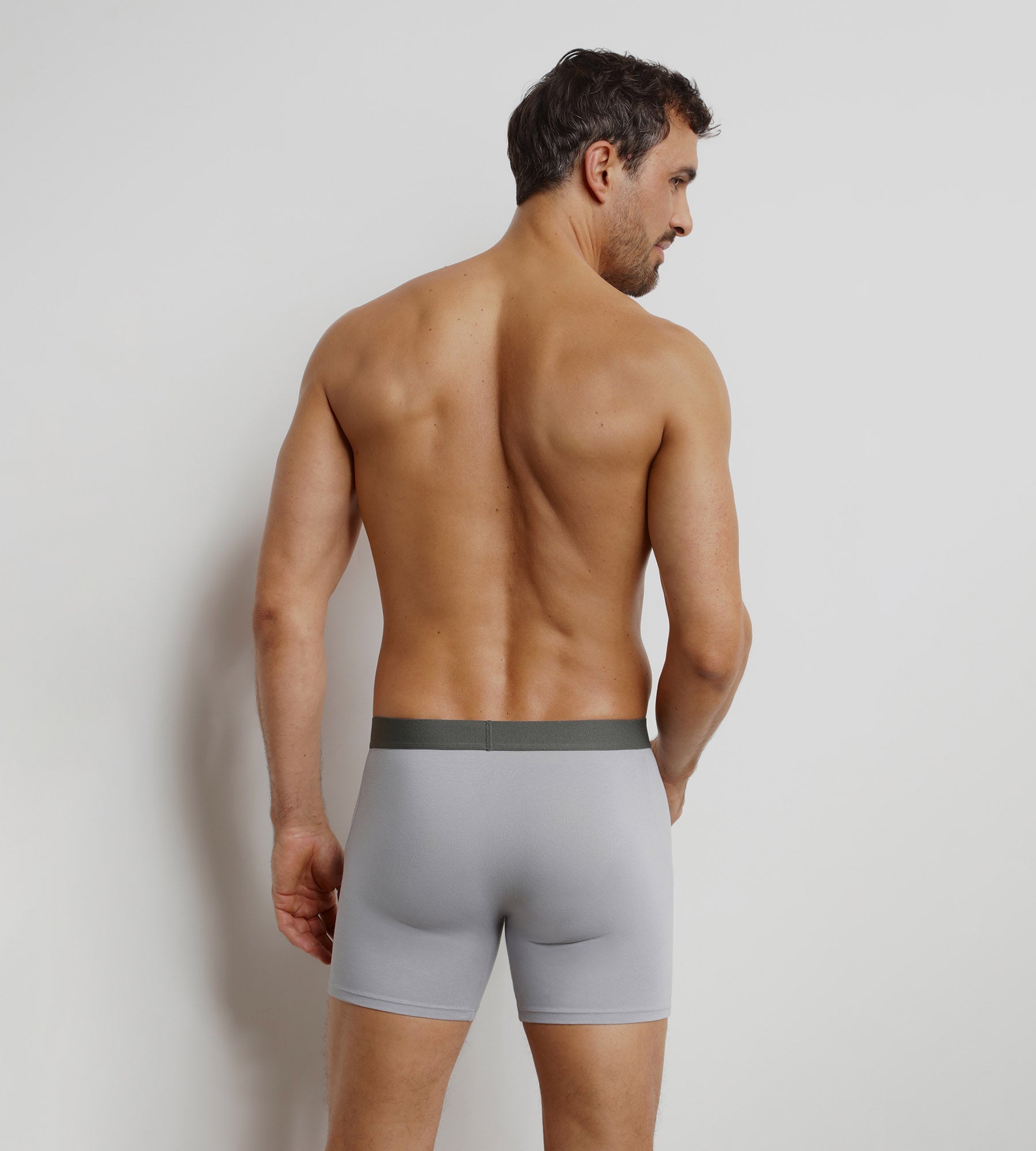 Punta sulla modernità dei boxer da uomo a metà coscia Dim Trendy in cotone color Acier, dal taglio sportivo e minimalista.