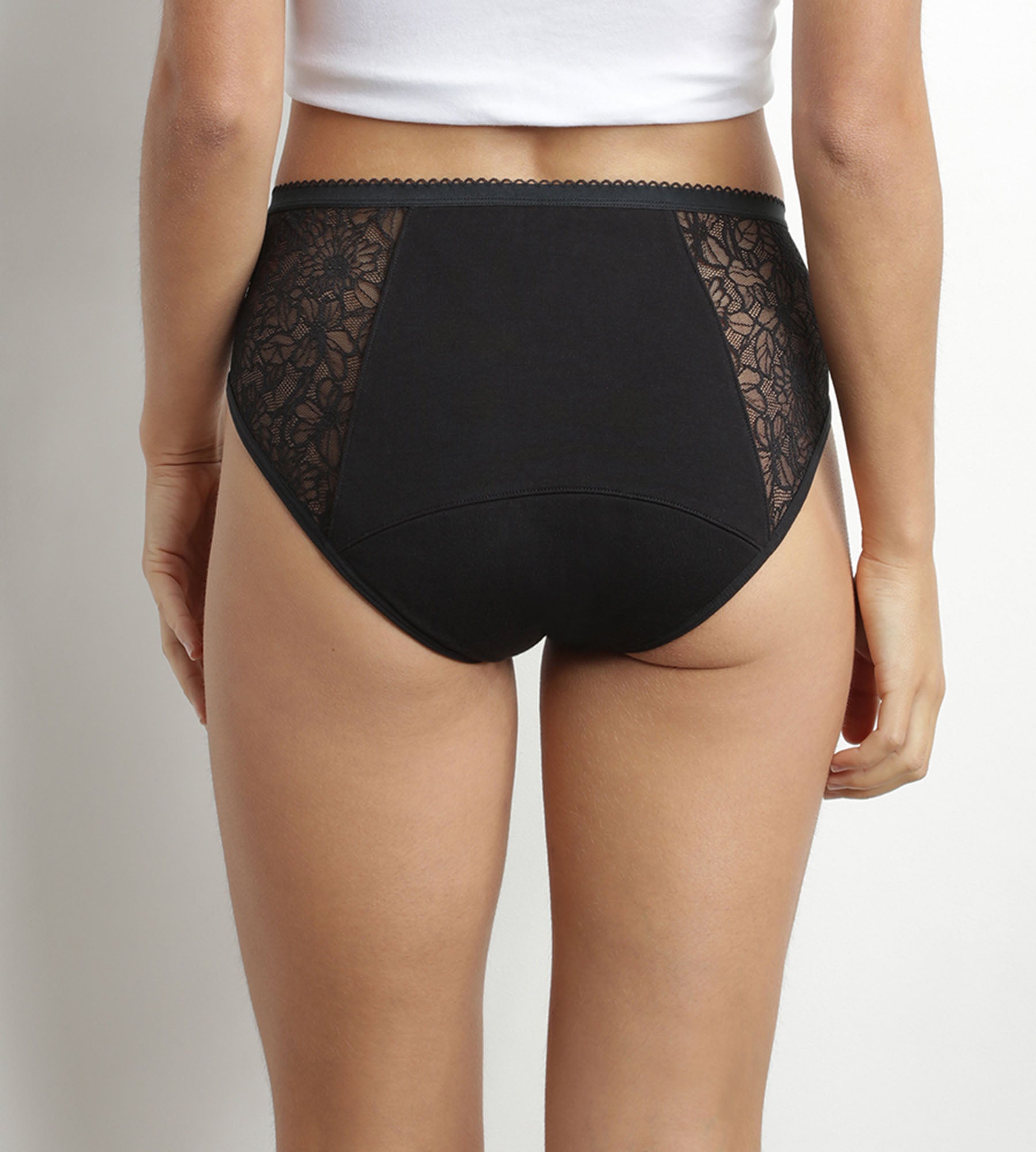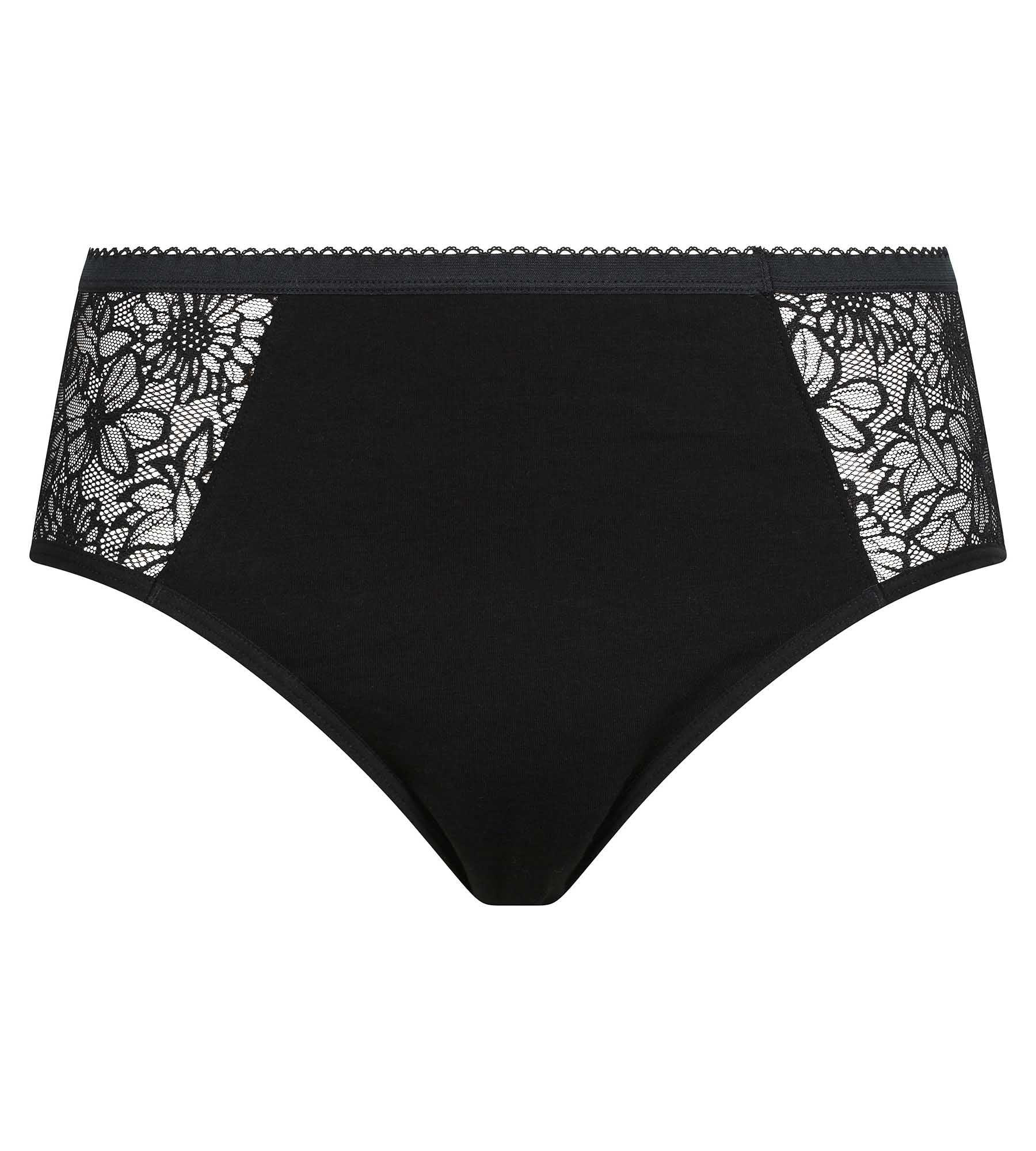 Affronta le mestruazioni con sicurezza ed eleganza grazie allo shorty mestruale DIM Protect in cotone biologico e pizzo floreale nero - per flussi molto abbondanti!