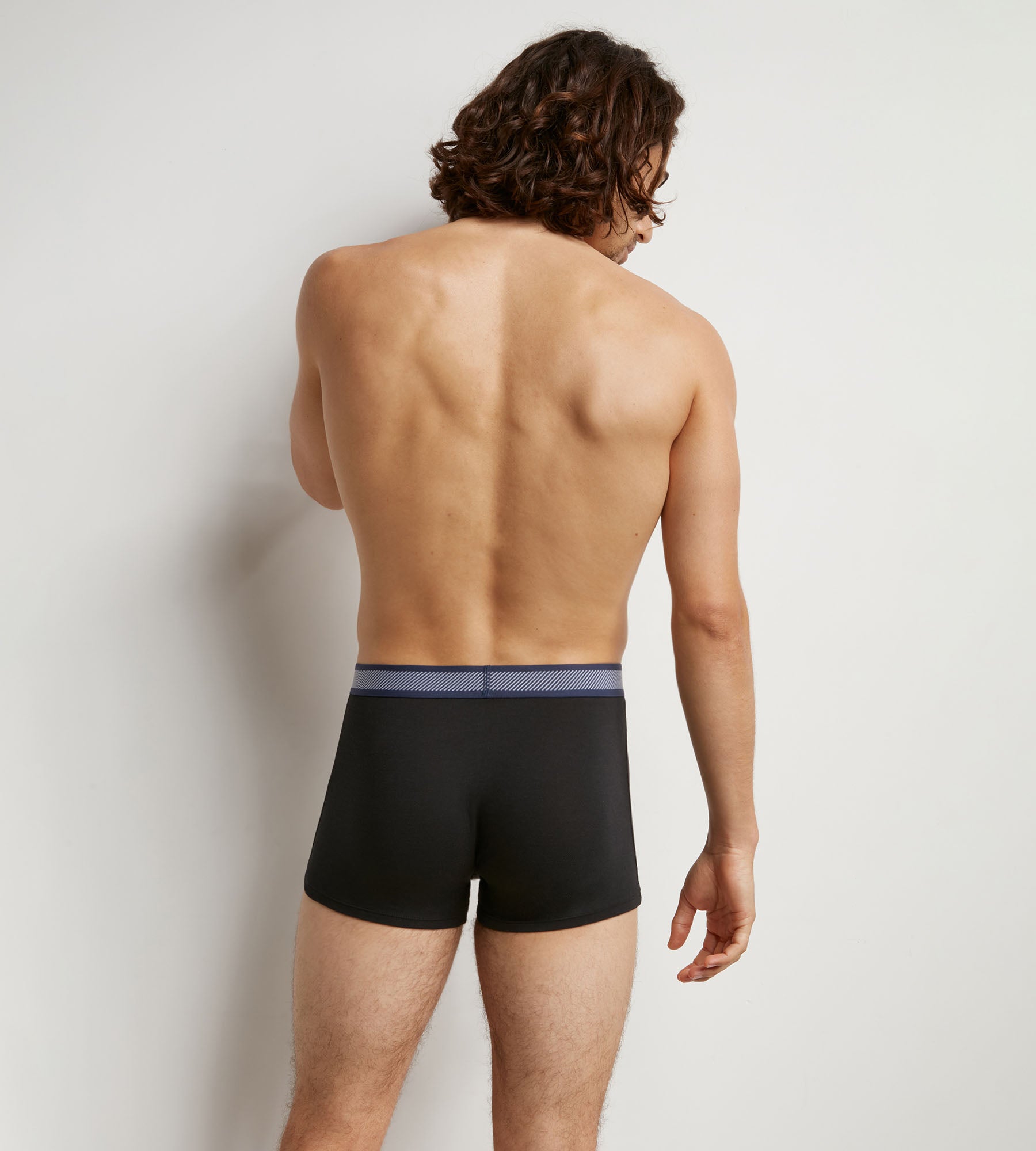 Per un look sportivo-chic, scegli i nostri boxer da uomo in piqué nero di cotone modal Dim Smart con la sua fascia in vita a righe preppy!