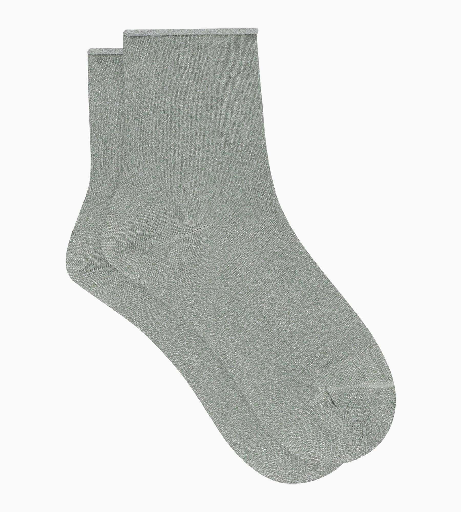 Con la sua tonalità kaki modernizzata da un filo di lurex, la calza da donna Dim Mode dona un tocco di naturale brillantezza senza essere eccessiva. La maglia è morbida e piacevole, e il bordo arrotolato avvolge la caviglia senza stringere. Ci innamoriamo di queste calze da donna in tinta unita più sofisticate, ma sempre facili da indossare.
