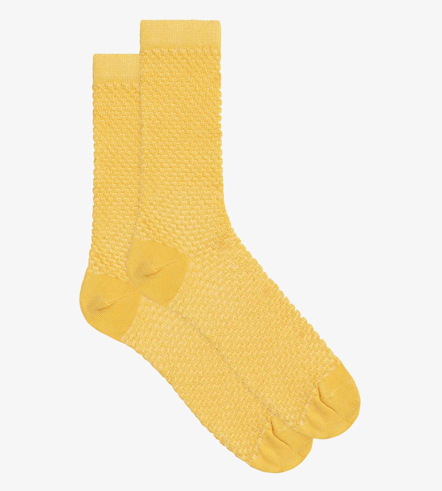 Ravviva il tuo look con le calze da donna Dim Style Lemon Yellow e la loro maglia waffle dal design unico!