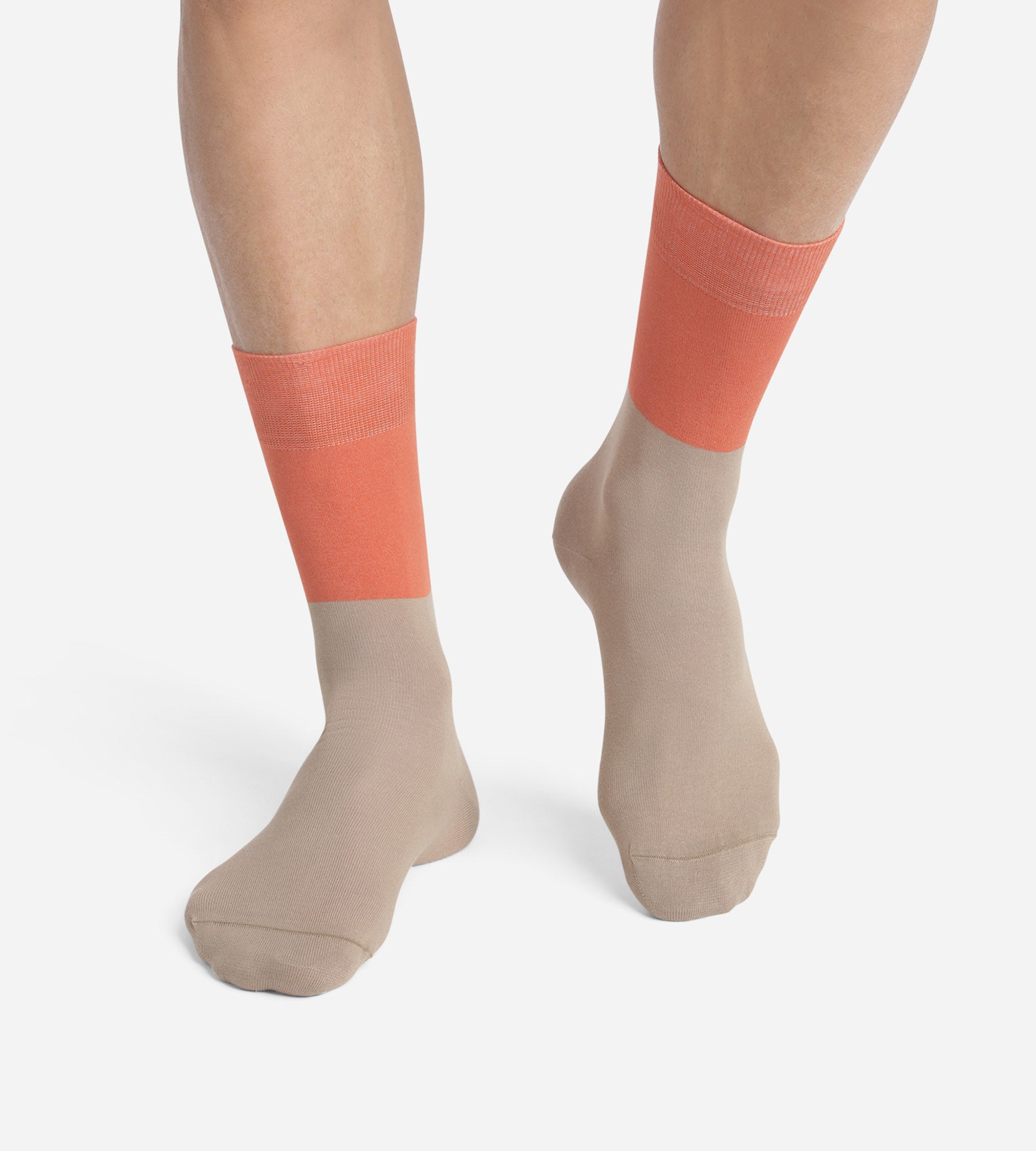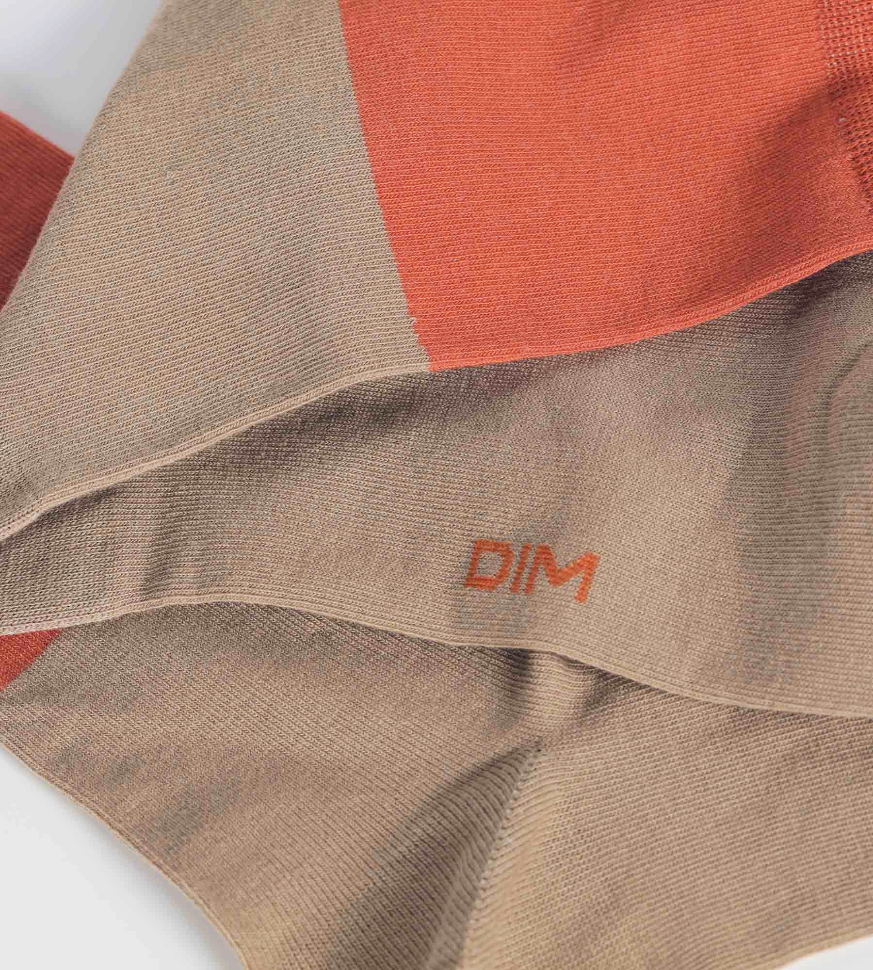 Combinando stile e comfort, le calze da uomo Dim Mode in pregiato cotone pettinato valorizzano i tuoi look quotidiani con un tocco di originalità. La combinazione di colori pralina e mandarino è discreta quando sei in piedi e aggiunge una dose di dinamismo quando sei seduto! Una combinazione perfetta di eleganza e moda per tutti i giorni!