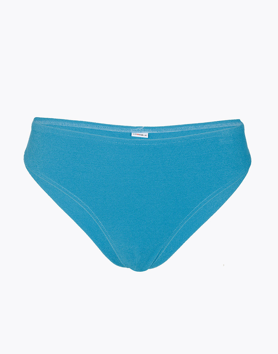 Realizzati in leggera spugna elasticizzata, aderiscono perfettamente al corpo e garantiscono un comfort senza pari per tutto il giorno. L'accessorio con logo sul retro aggiunge un dettaglio distintivo, mentre il colore blu-verde chiaro conferisce un tocco fresco ed elegante al tuo look.