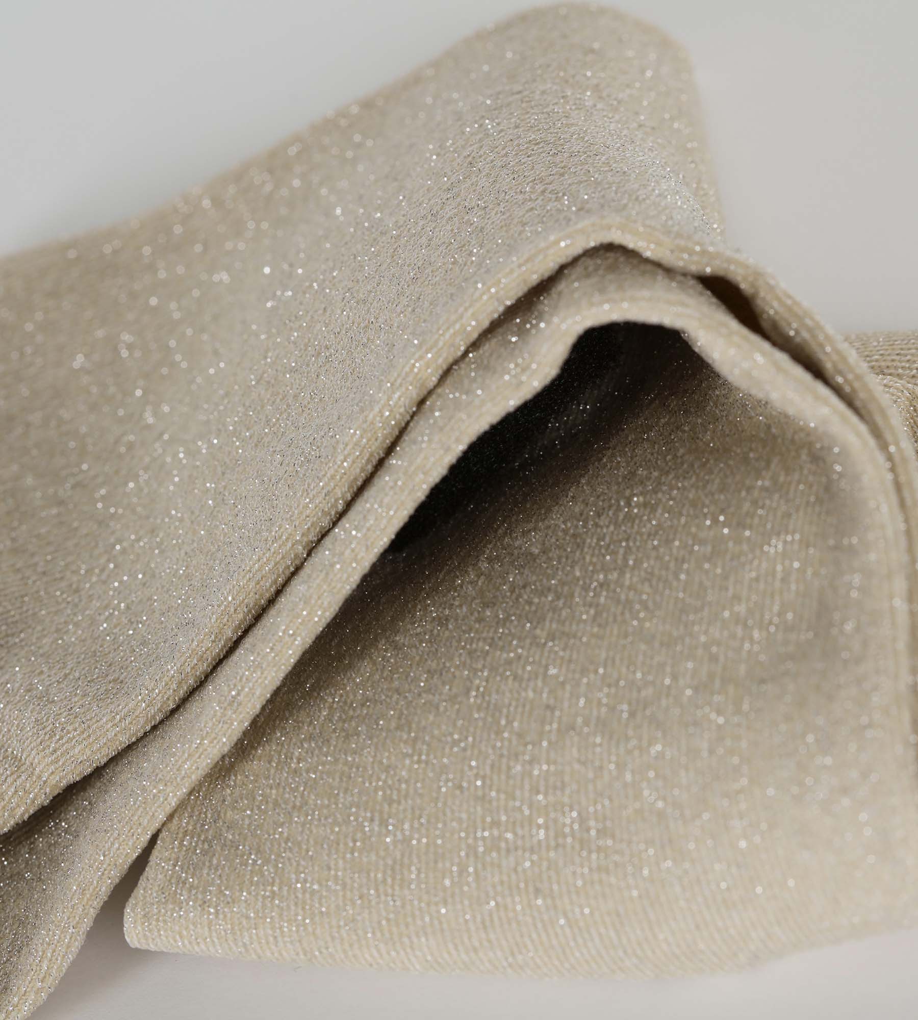 - La maglia leggermente iridescente che crea un sottile effetto a rilievo