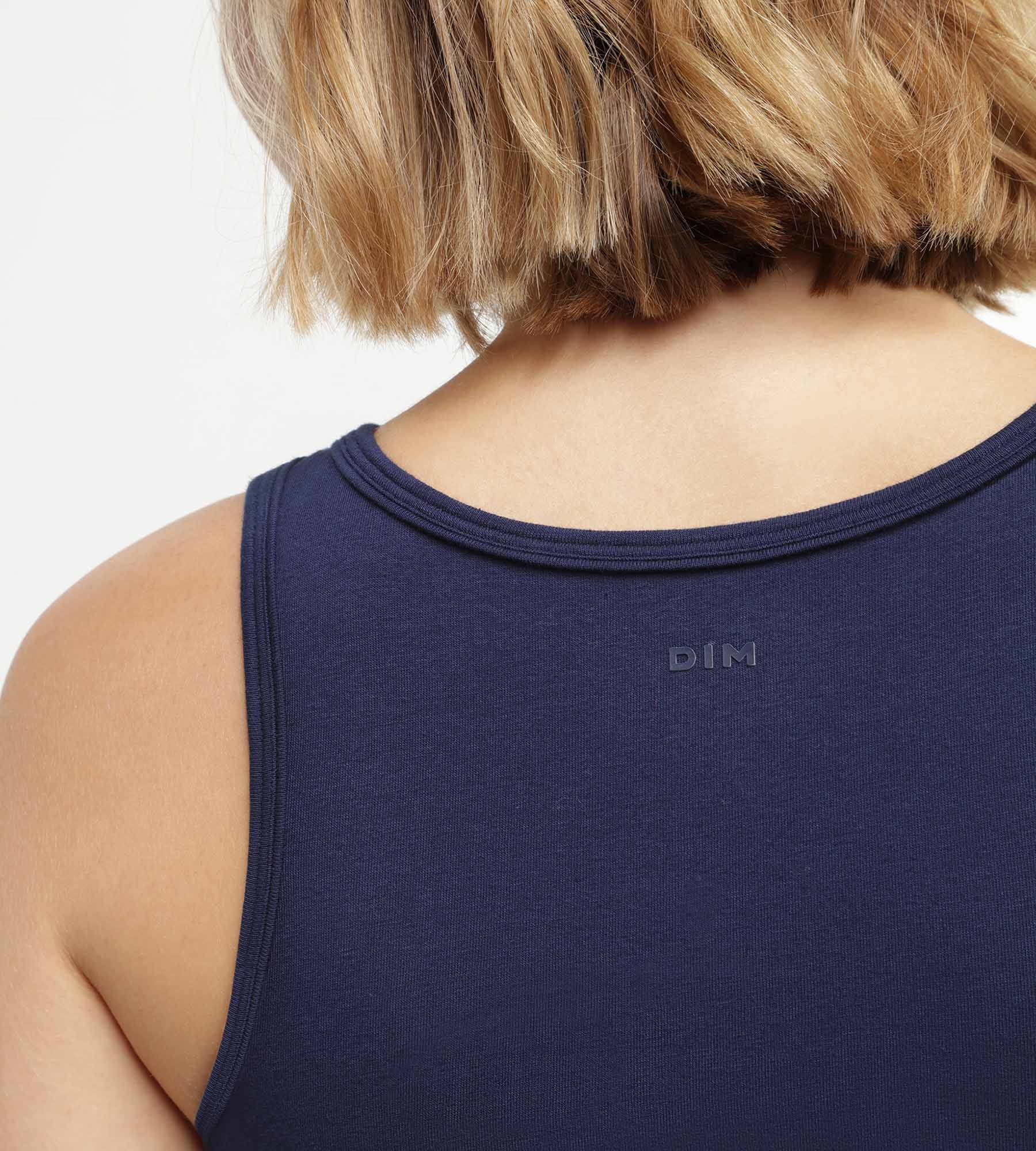 Realizzato in un tessuto tecnico leggero e traspirante, il top sportivo da donna DIM Move allontana l'umidità e regola la temperatura corporea. La sua forma aderente e il giromanica all'americana ti danno la libertà di muoverti a piacimento. Con il suo intramontabile colore blu notte e le finiture bianche che accentuano la silhouette, questa canotta da donna è tanto pratica quanto elegante.
