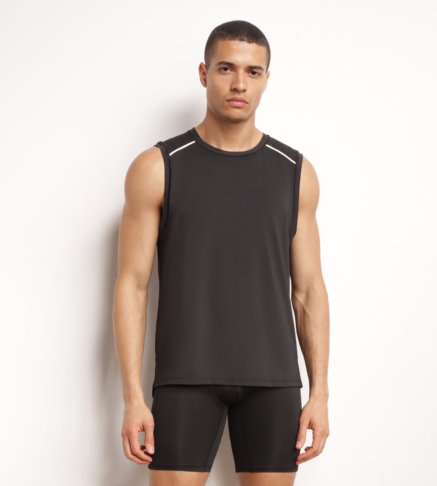 Per sessioni di allenamento senza limiti, scegli il top sportivo da uomo DIM Move in tessuto nero traspirante!