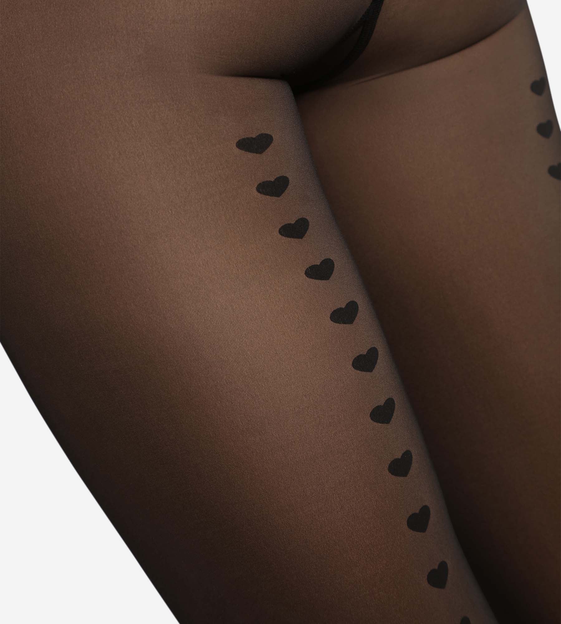 Ti piacerà il collant nero DIM Thermo: un velo trasparente con cuori e un interno caldo per unire stile e protezione.