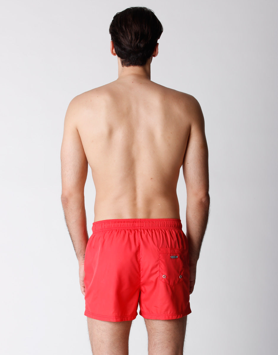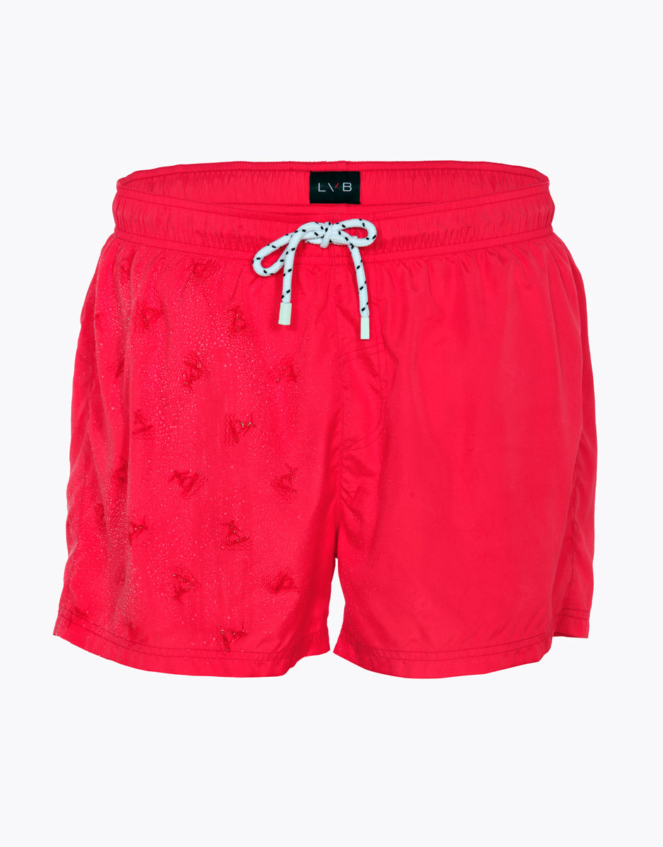 Costume da bagno corto da uomo rosso con stampa Surf