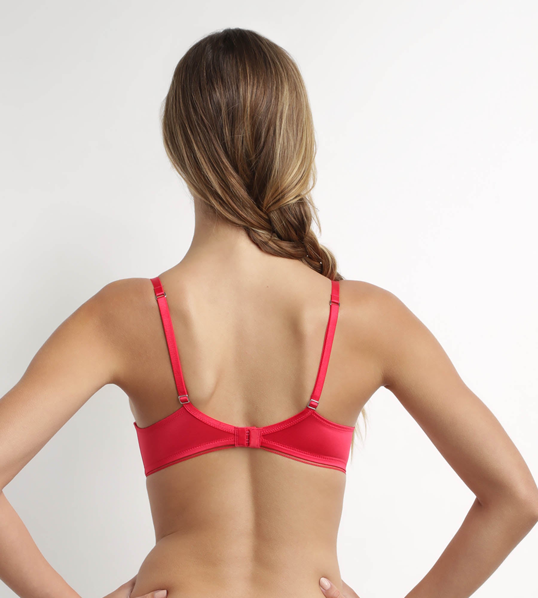 Un look chic e moderno con il reggiseno a balconcino in microfibra satinata Dim Chéri in rosso!
