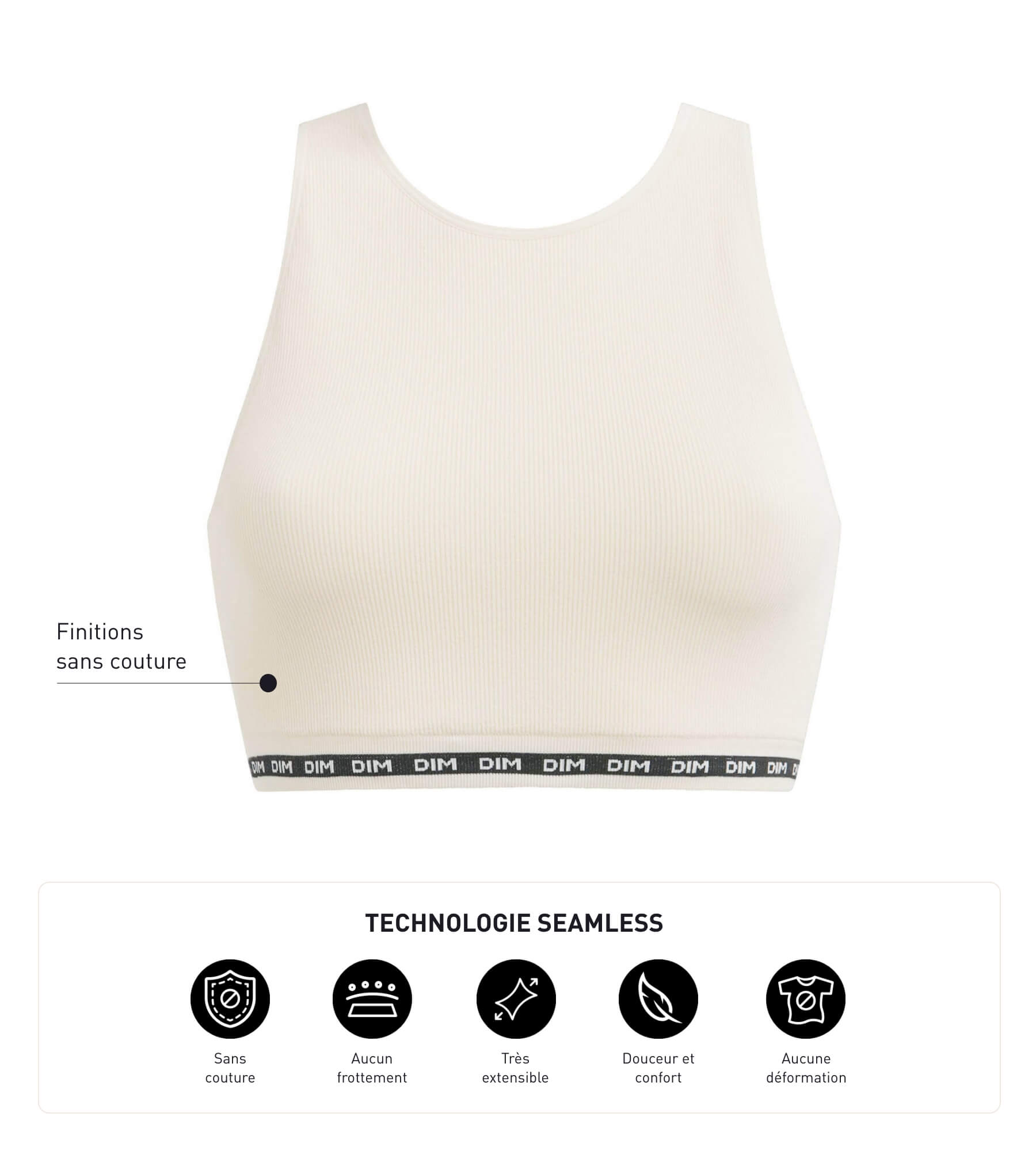 Affronta la giornata in tutta comodità grazie al DIM Icons Seamless, con il suo design crop top senza cuciture che preserva la tua libertà di movimento! Ci piace la sua maglia a coste che ti avvolge con facilità e la sua struttura morbida: il nostro reggiseno Dim è assolutamente accogliente! Con il suo taglio a top, la nostra lingerie può essere indossata da sola o con un reggiseno invisibile per un maggiore sostegno.