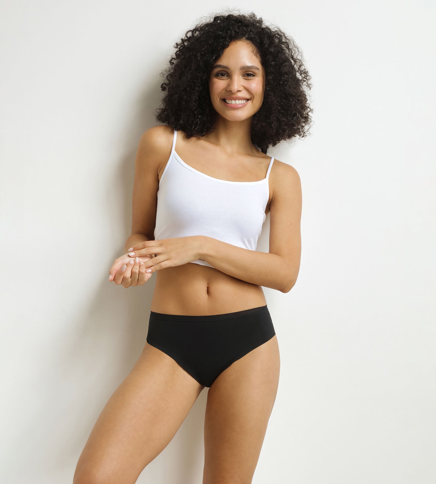 Protezione discreta e ultra efficace con le mutande mestruali invisibili in microfibra nera DIM Protect.
