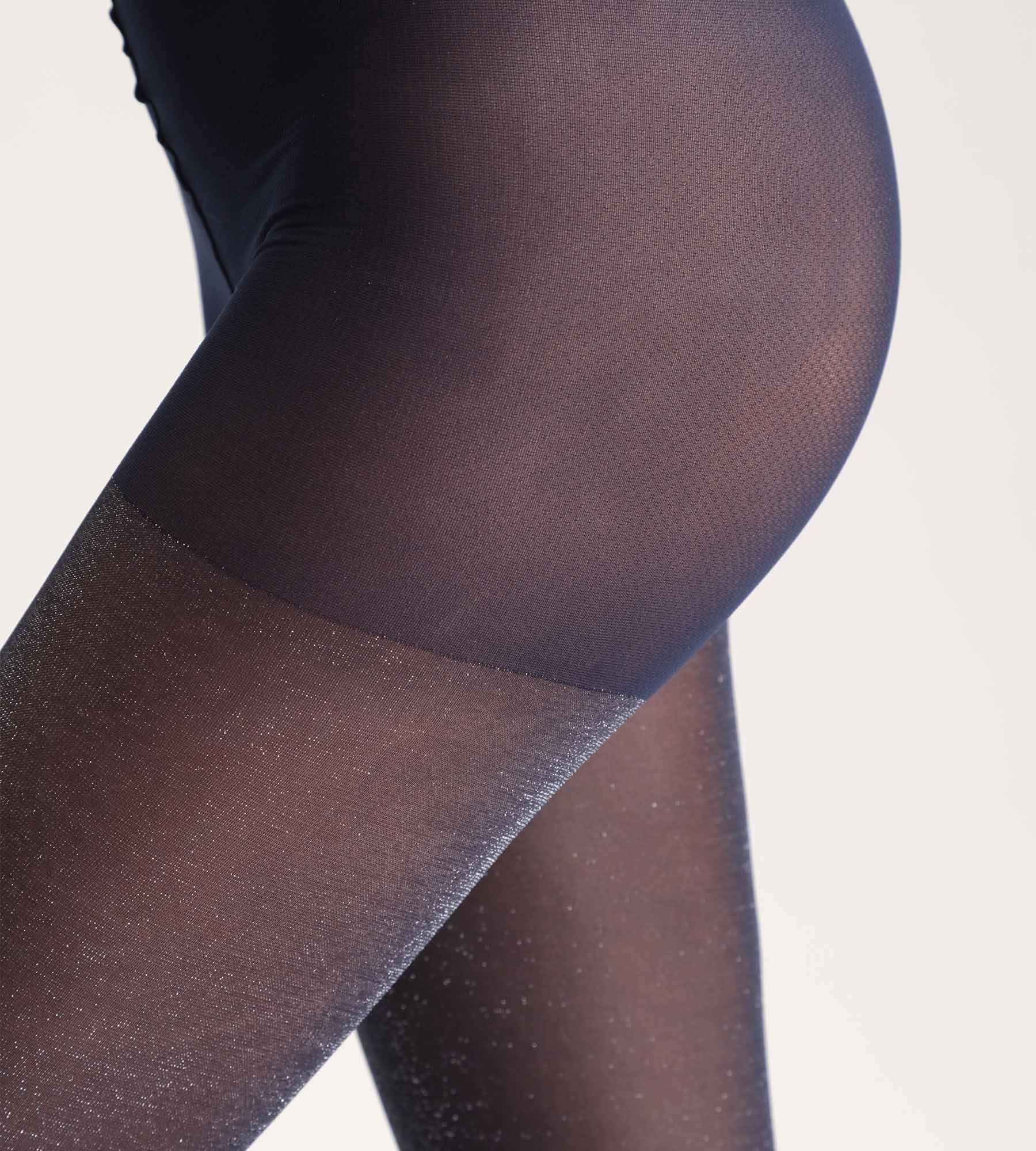 Illumina i tuoi outfit con eleganza grazie ai collant fantasia donna DIM Style in voile Lurex blu navy.