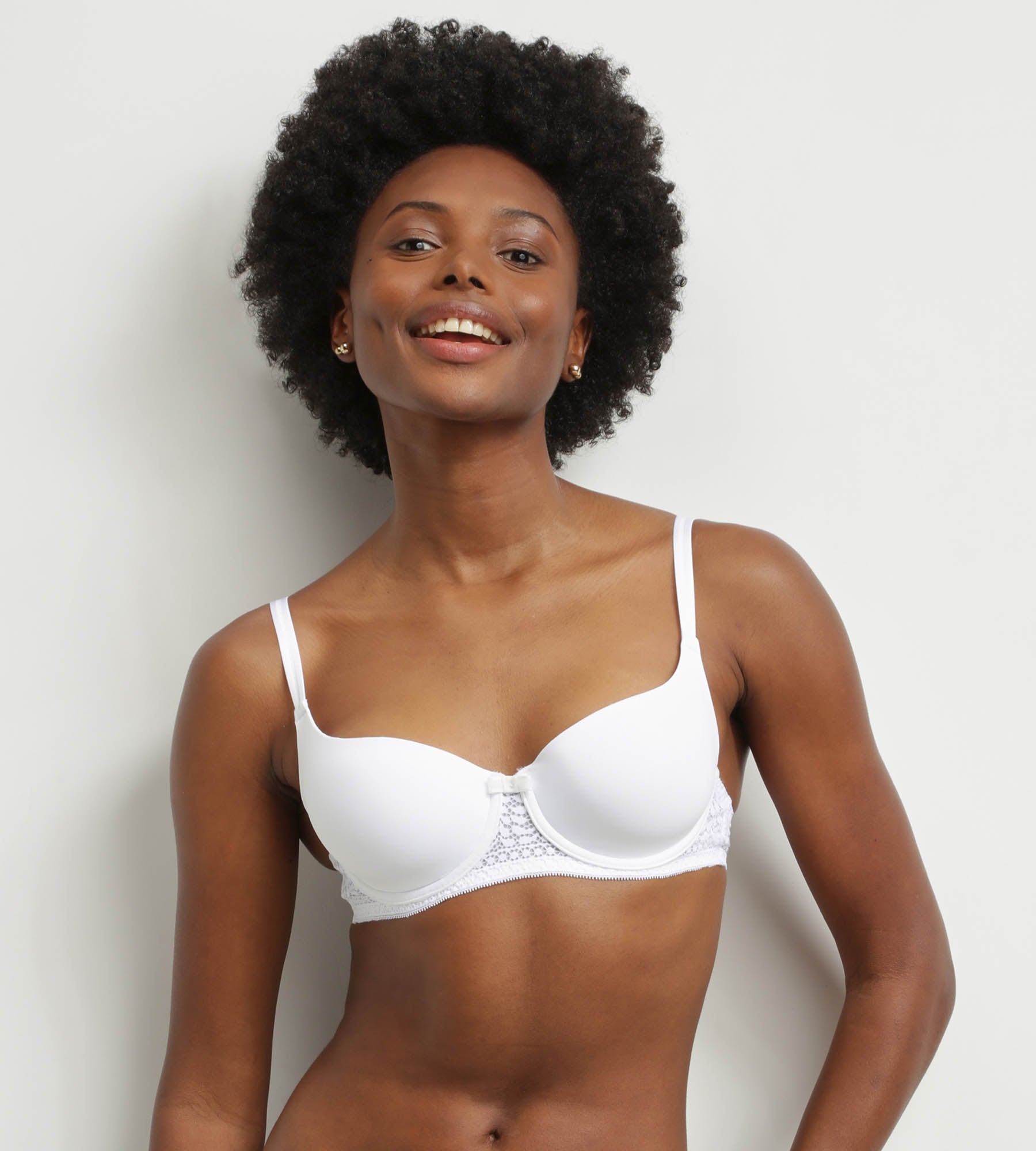 é con femminilità grazie al reggiseno a balconcino Dim® White in pizzo floreale riciclato.