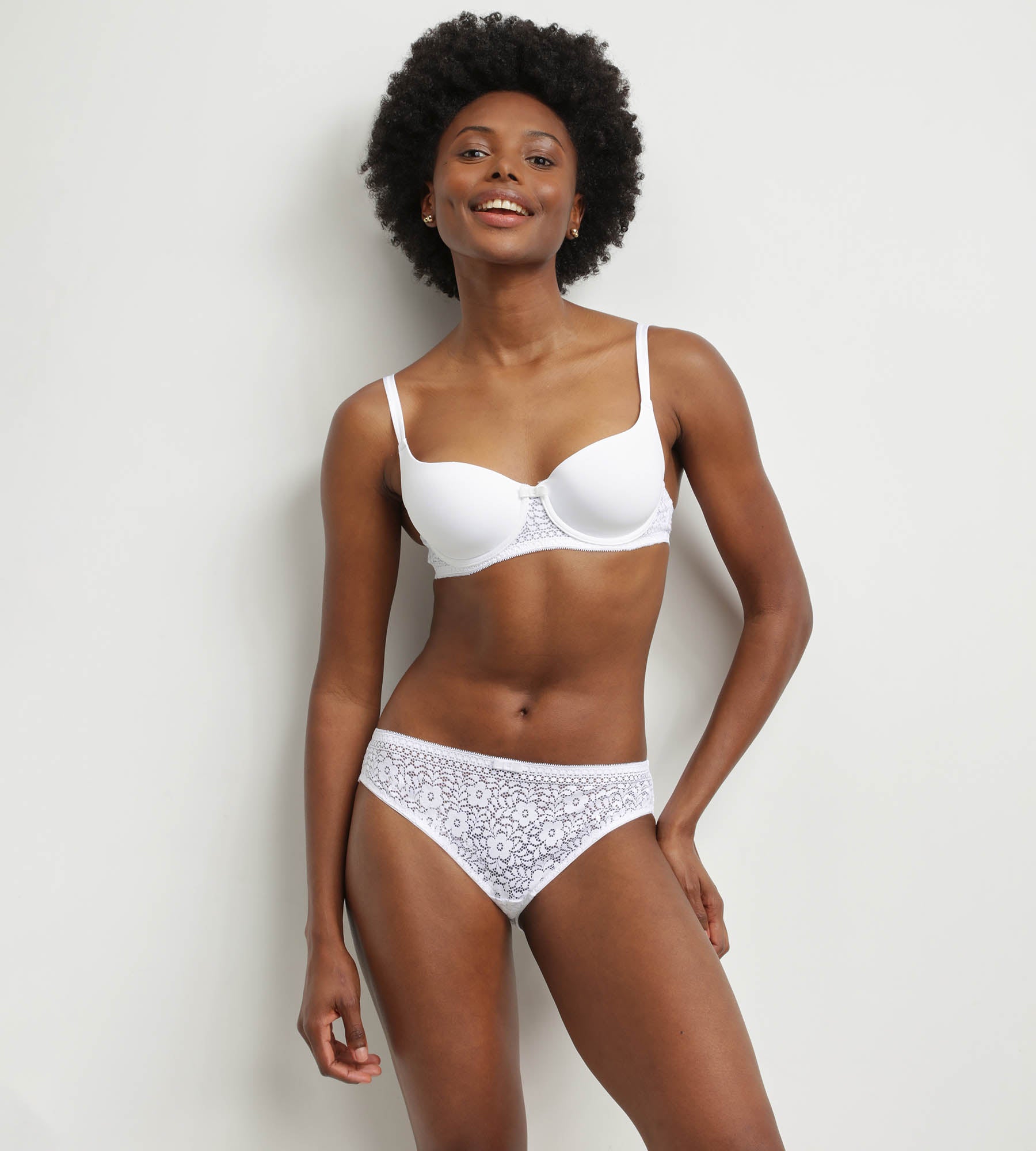 Affronta la giornata con dolcezza con gli slip da donna bianchi di Dim Sublim in pizzo riciclato e motivi floreali!