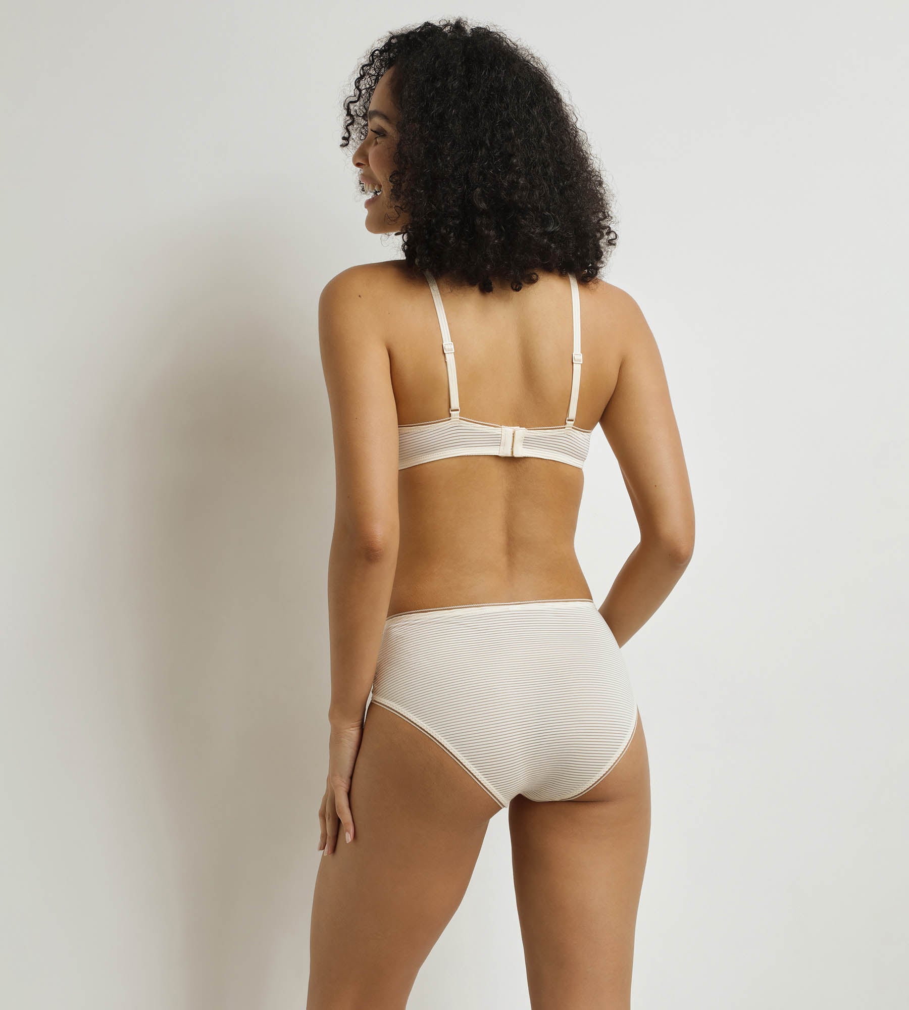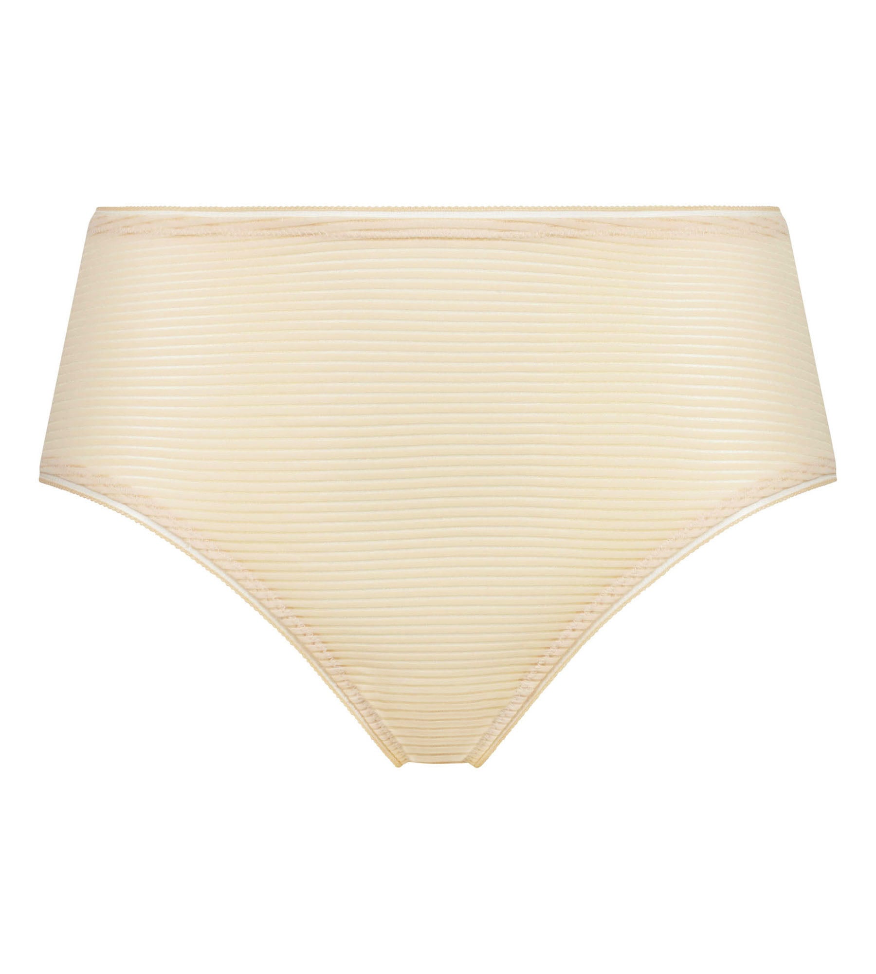 Innamorati delle strisce leggere e delle raffinate trasparenze degli slip a vita alta Beige Macadamia DIM x Inès de La Fressange.