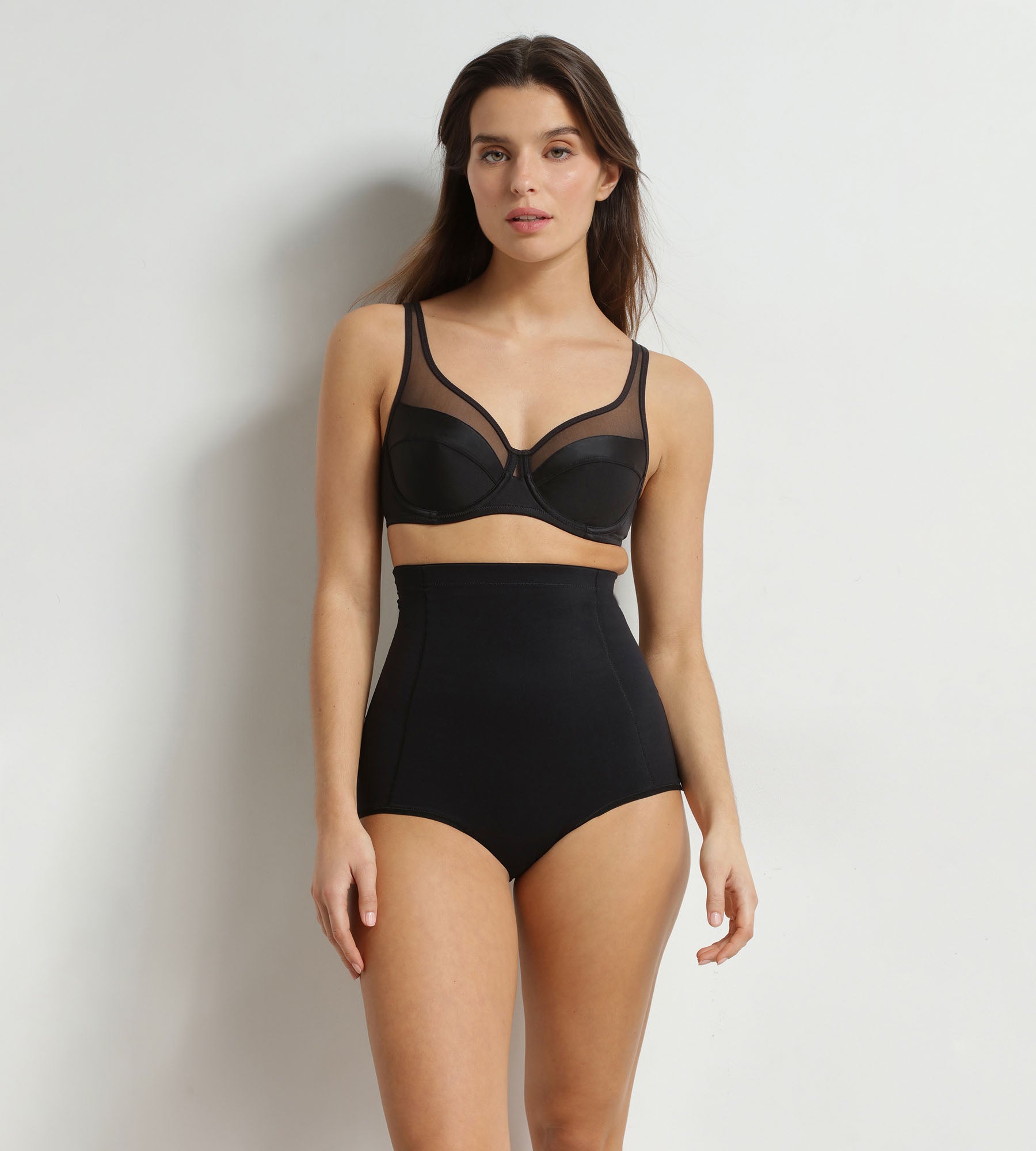 Sostegno mirato e linea affinata: lo slip contenitivo a vita alta in microfibra nera Dim Silhouette Contour leviga la zona pancia-fianchi in tutta discrezione.