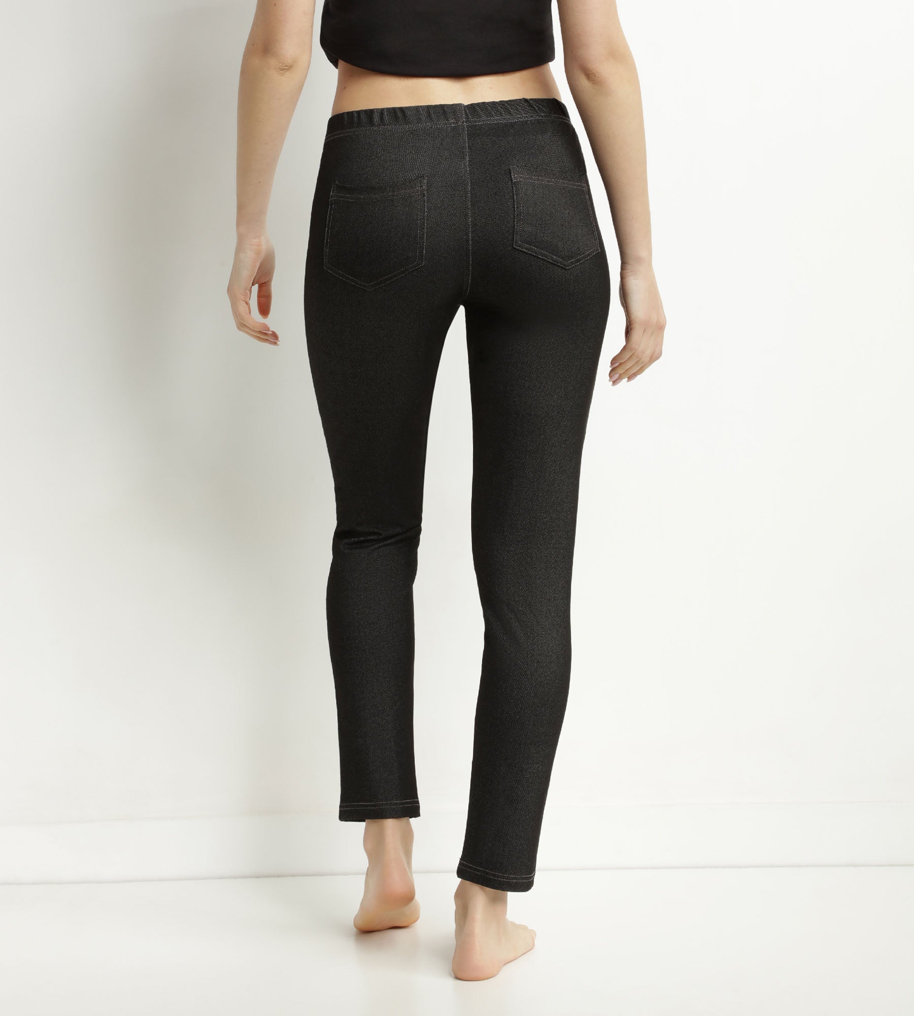 Affronta la giornata in stile rilassato con i leggings da donna Relax & Go in un tessuto nero di tendenza a effetto jeans!