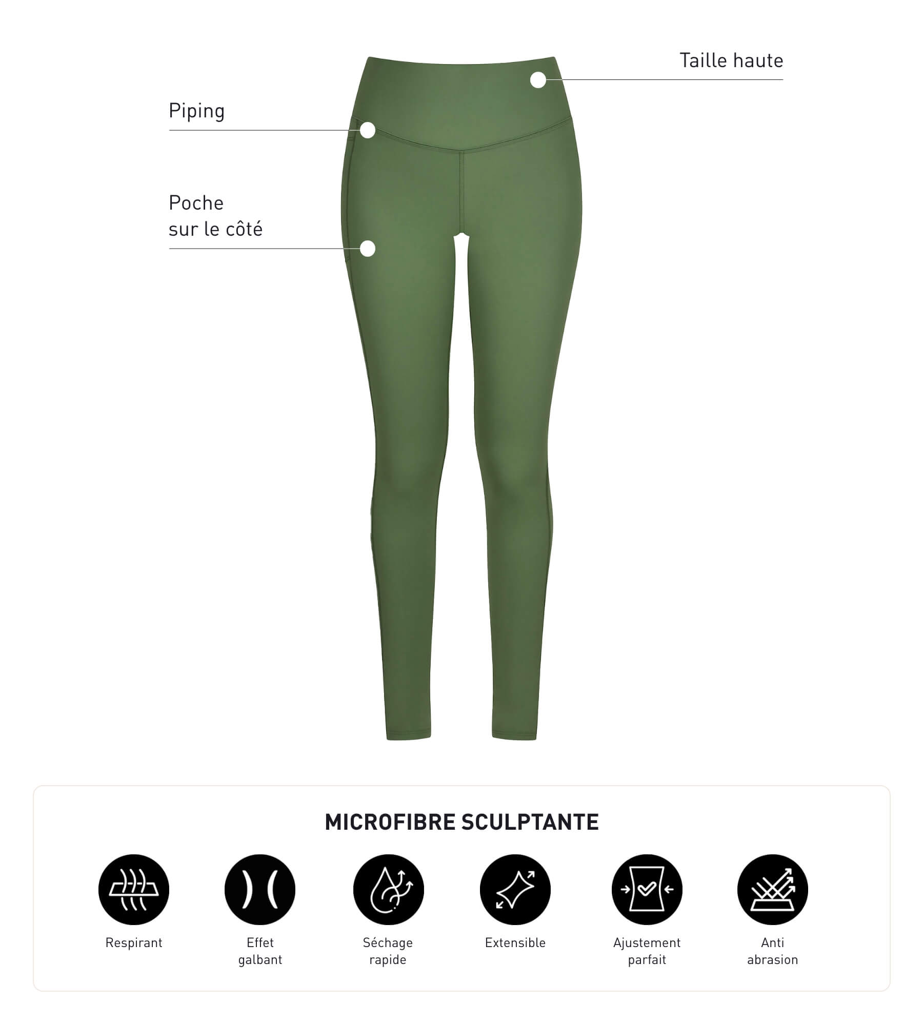 Affronta il tuo sport con facilità, prestazioni e stile con i leggings sportivi in microfibra Khaki da donna di DIM Move!