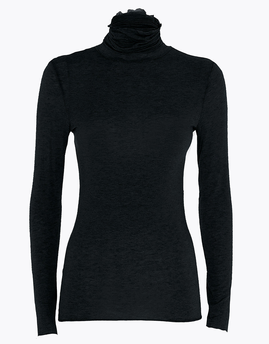 Maglia a collo alto in modal e cashmere nero con maniche lunghe