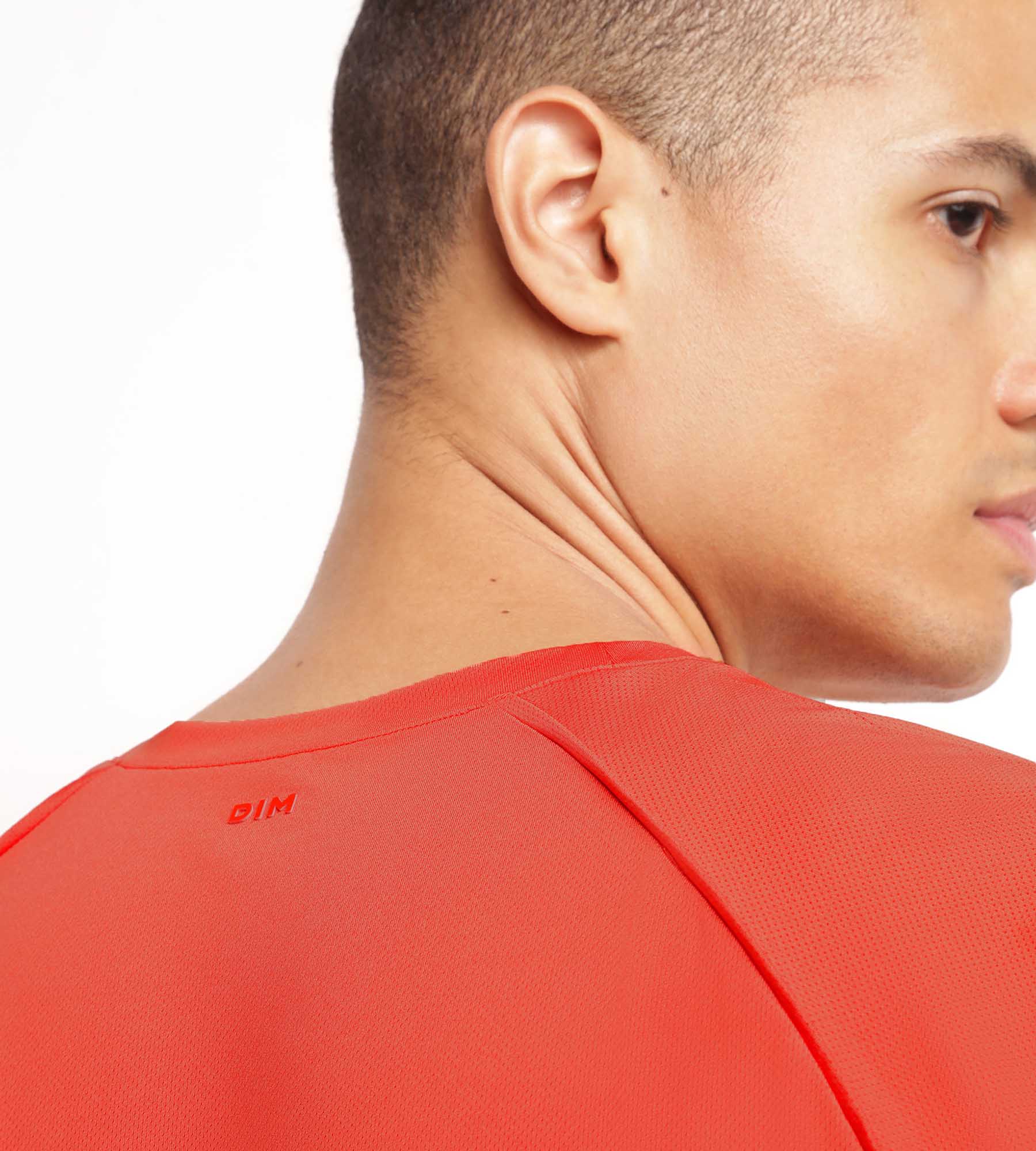 Rimani fresco durante l'attività fisica con la t-shirt sportiva da uomo DIM Move in mesh arancione!