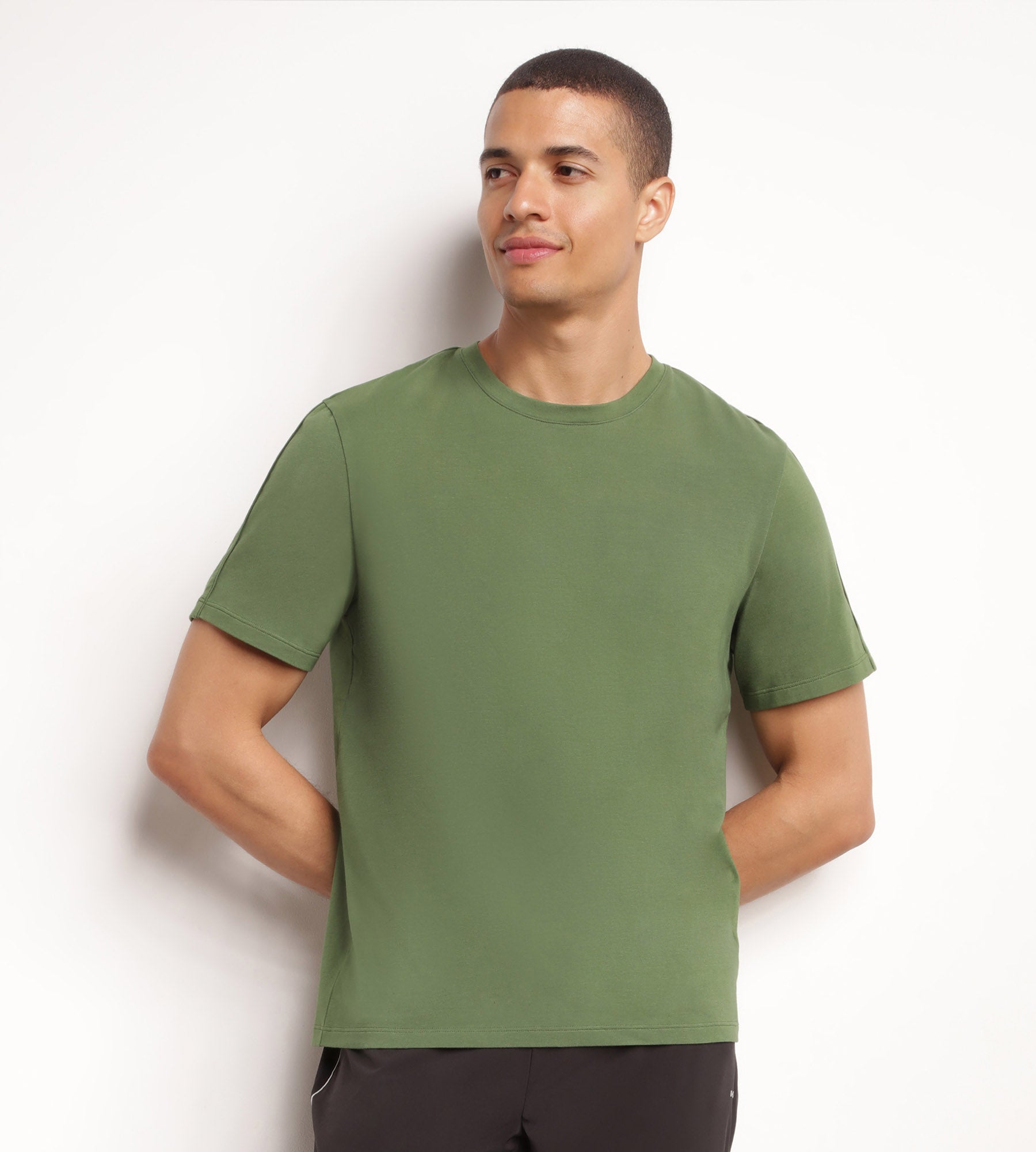 Migliora il tuo benessere durante l'attività fisica con la t-shirt da uomo DIM Move in jersey color kaki dallo stile molto urbano!