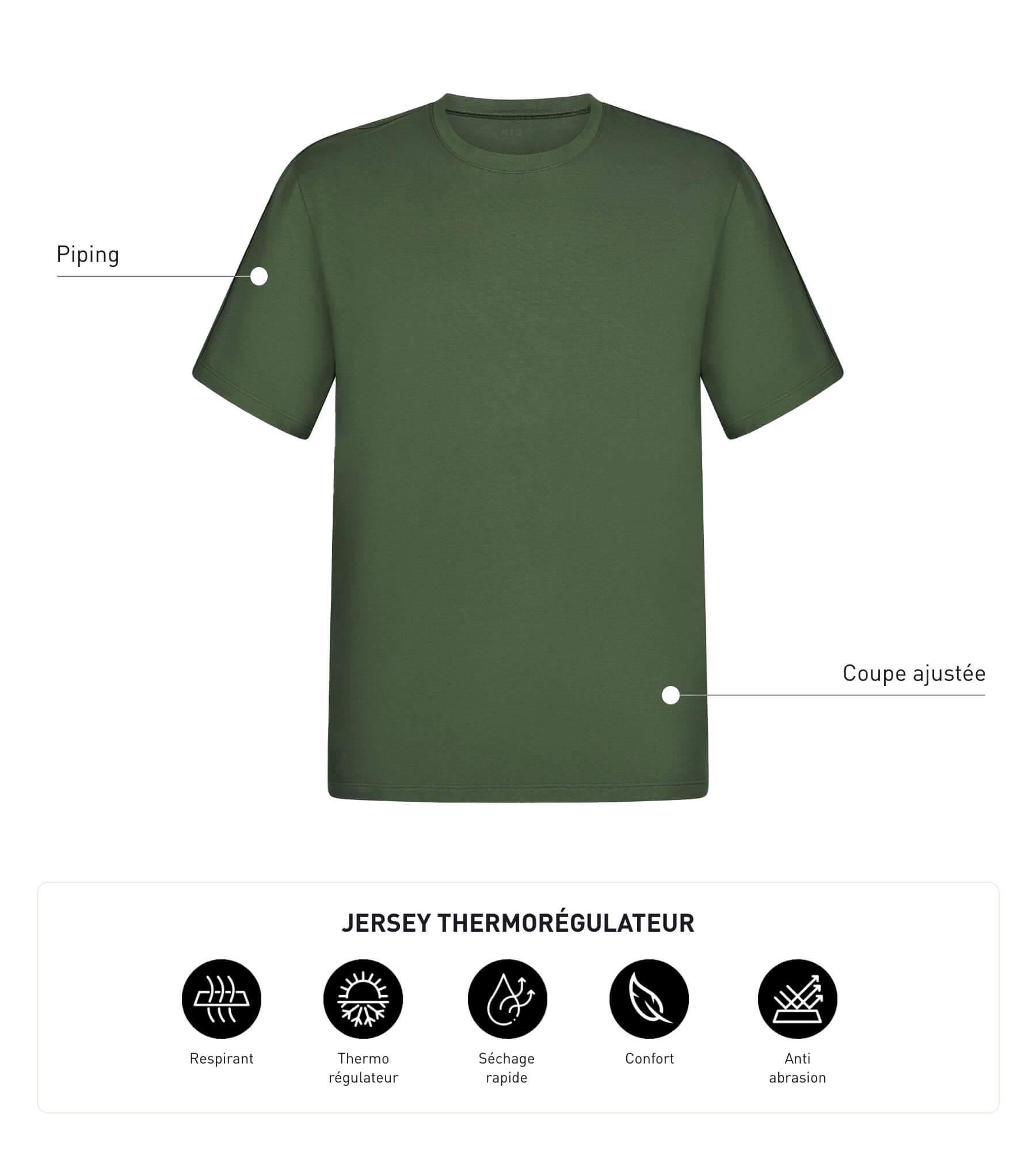 Maglietta sportiva in jersey termoregolatore Uomo Khaki DIM Move
