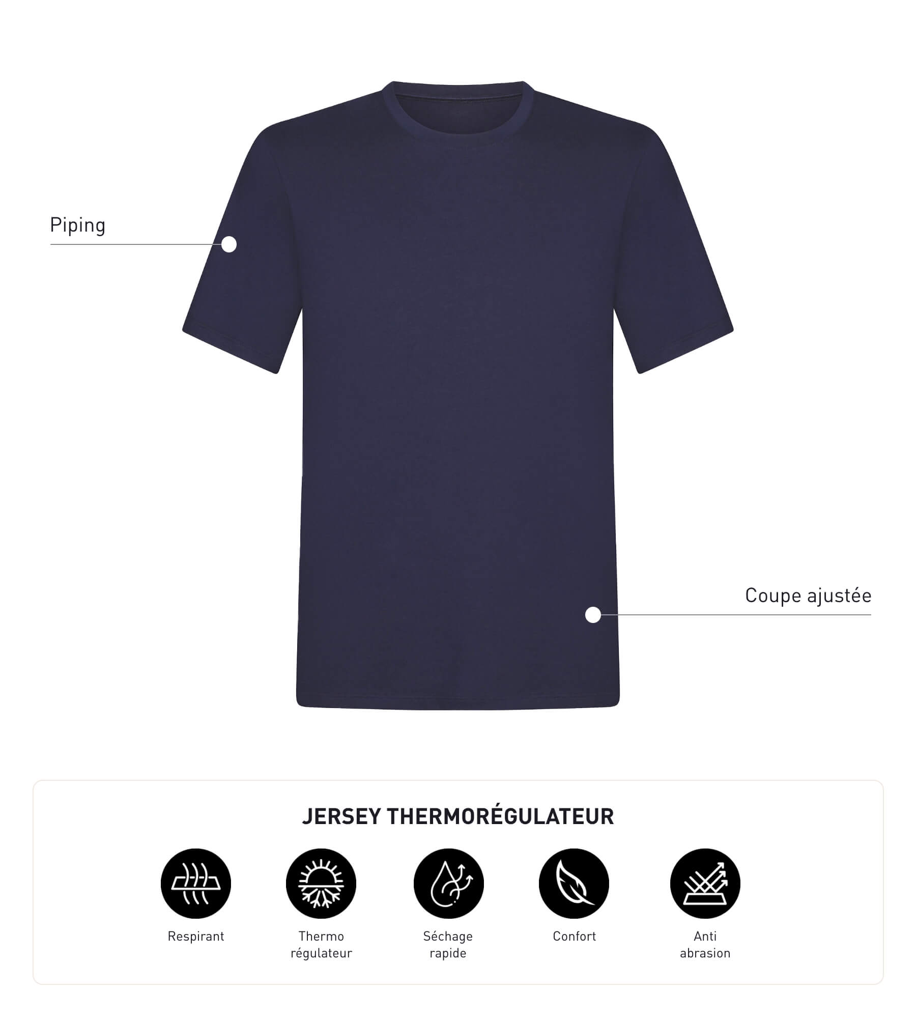 Perfetta per muoversi senza costrizioni, la t-shirt sportiva DIM Move in jersey blu notte combina morbidezza e traspirabilità. Grazie alle sue fibre tecniche, allontana il sudore e aiuta a regolare la temperatura corporea, anche quando sei sotto sforzo. L'asciugatura è rapida e ti permette di stare comodo per tutto il giorno. Ci piace la vestibilità slim, che valorizza la silhouette senza costringere, e i profili a contrasto che sottolineano e strutturano le spalle. Che si tratti di una sessione sportiva o di una giornata intensa, questa T-shirt da uomo Dim® ti terrà compagnia con stile ed efficienza.