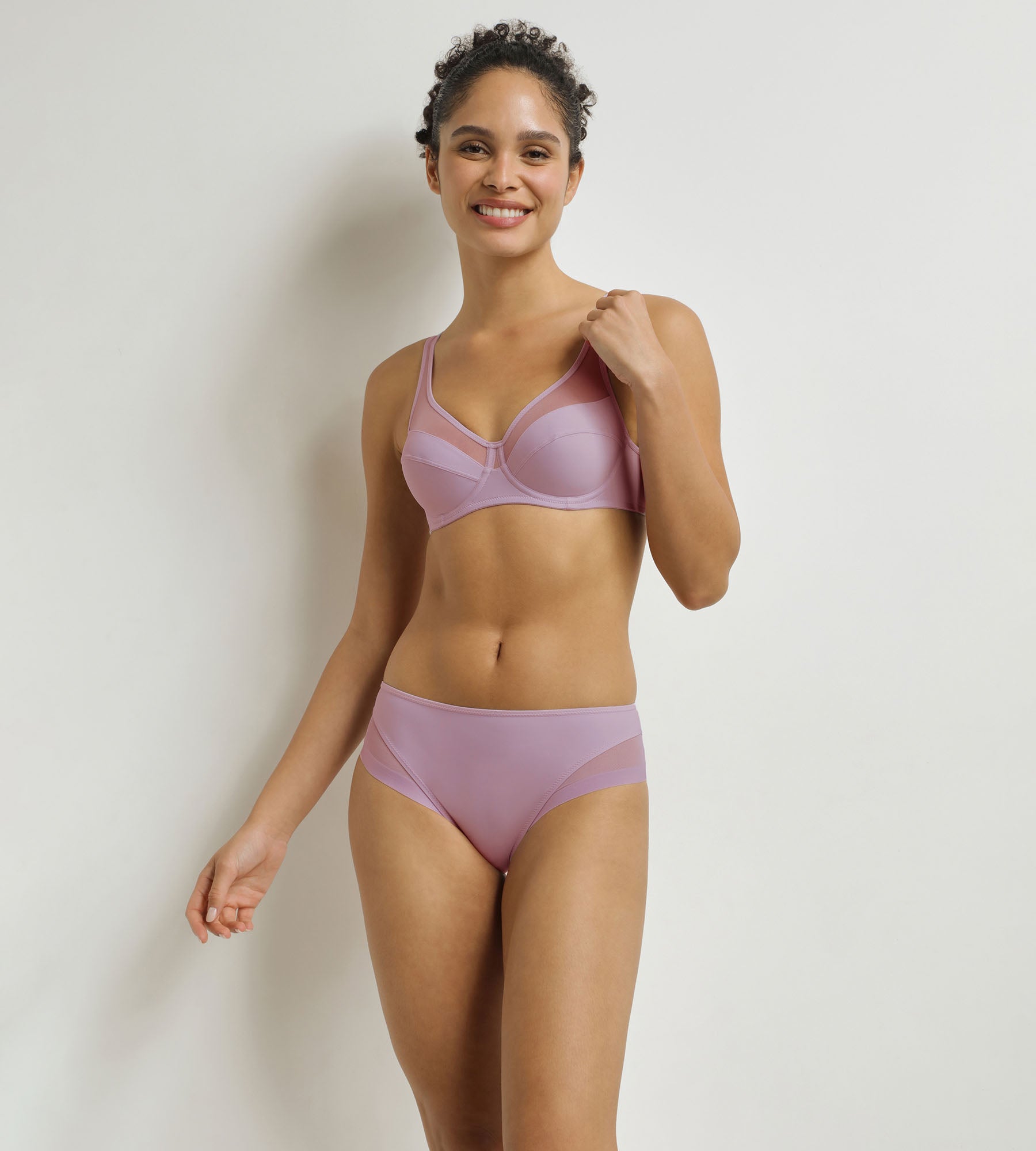 Innamorati del design comodo e delicato degli slip da donna Dim Generous in microfibra e tulle Violet Passé.