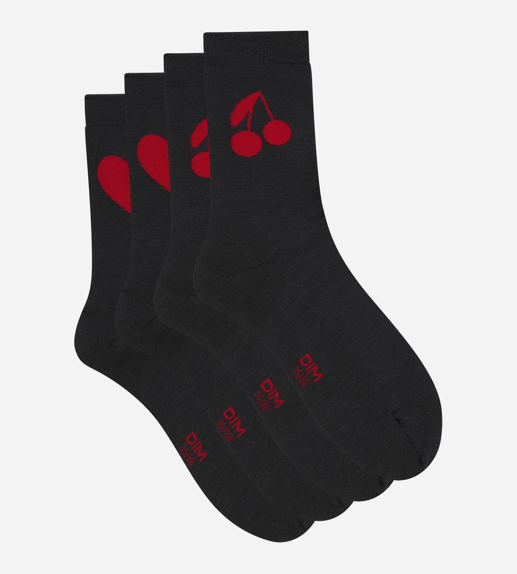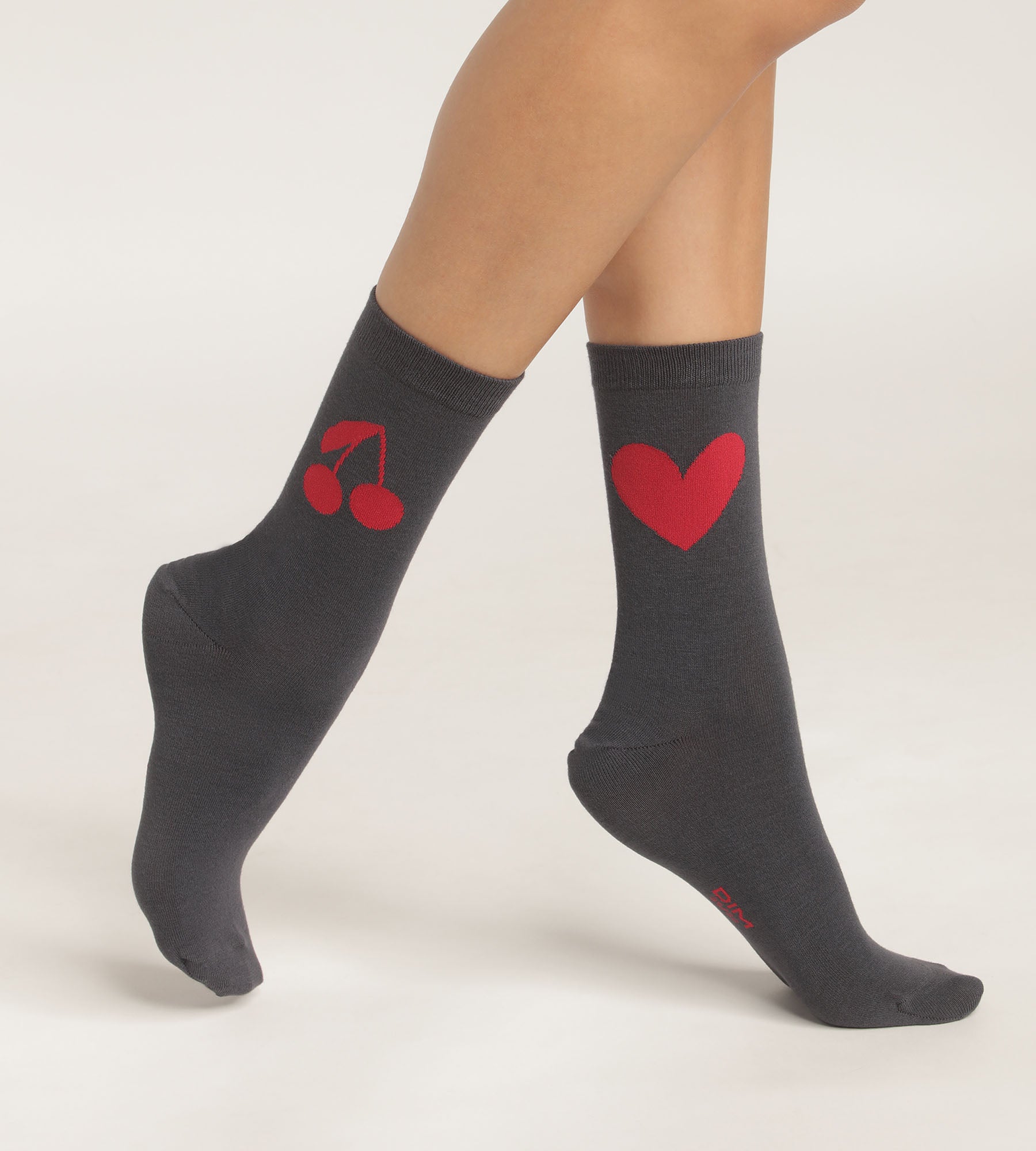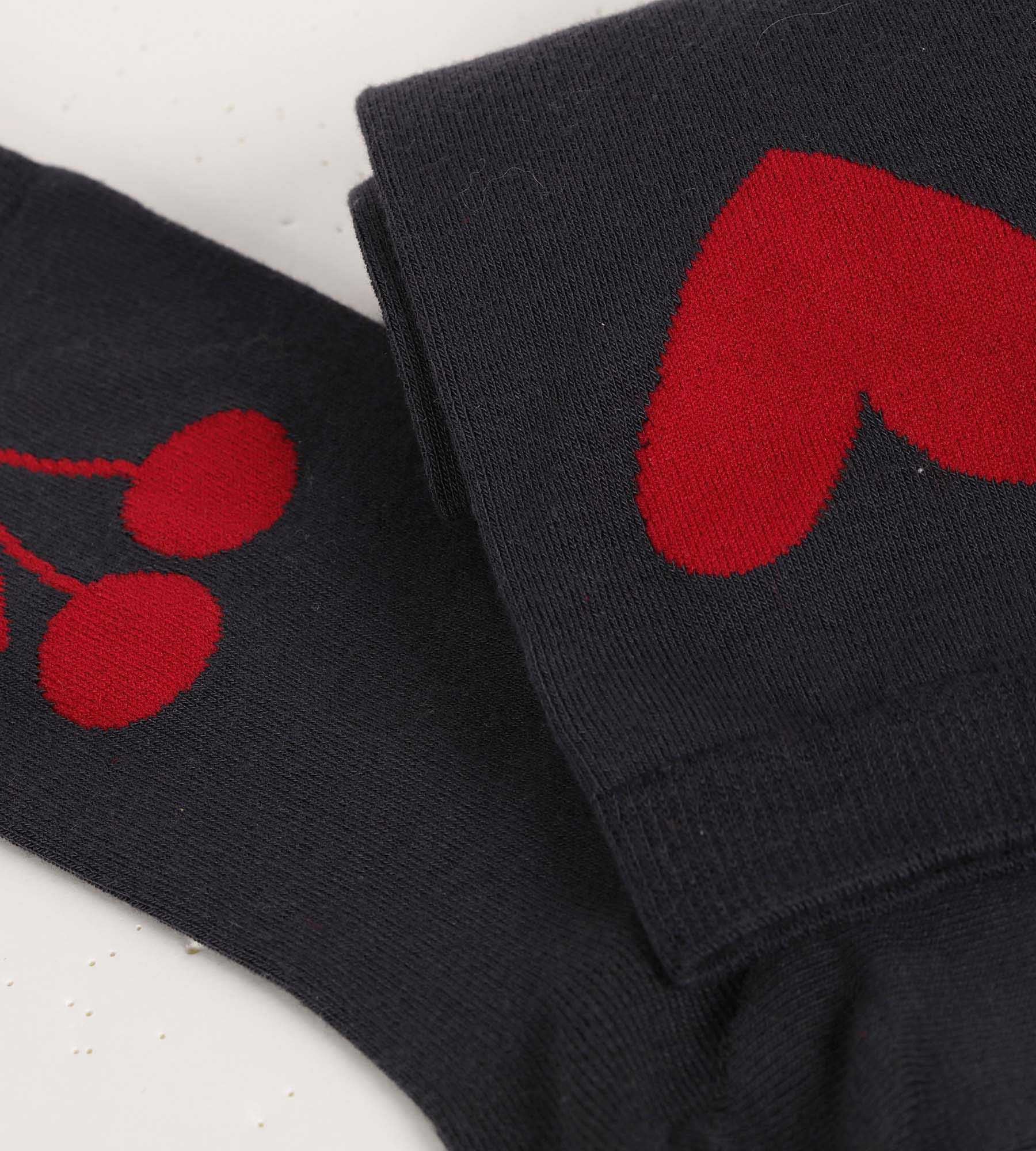 Pacco da 2 calze da donna grigio scuro con cuore e ciliegia Dim Bamboo