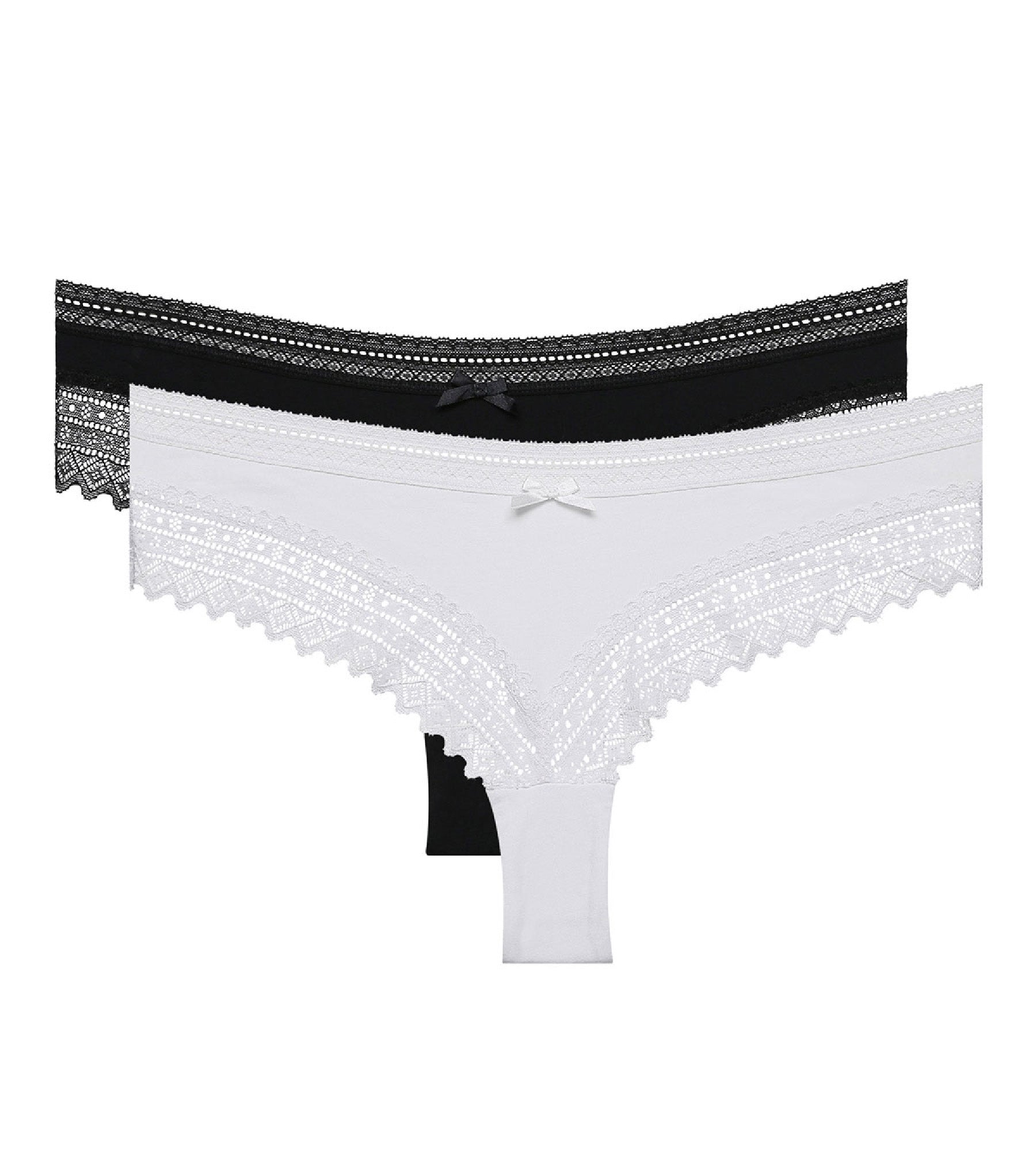 Pacco da 2 shorty in pizzo di cotone bianco e nero Sexy Fashion