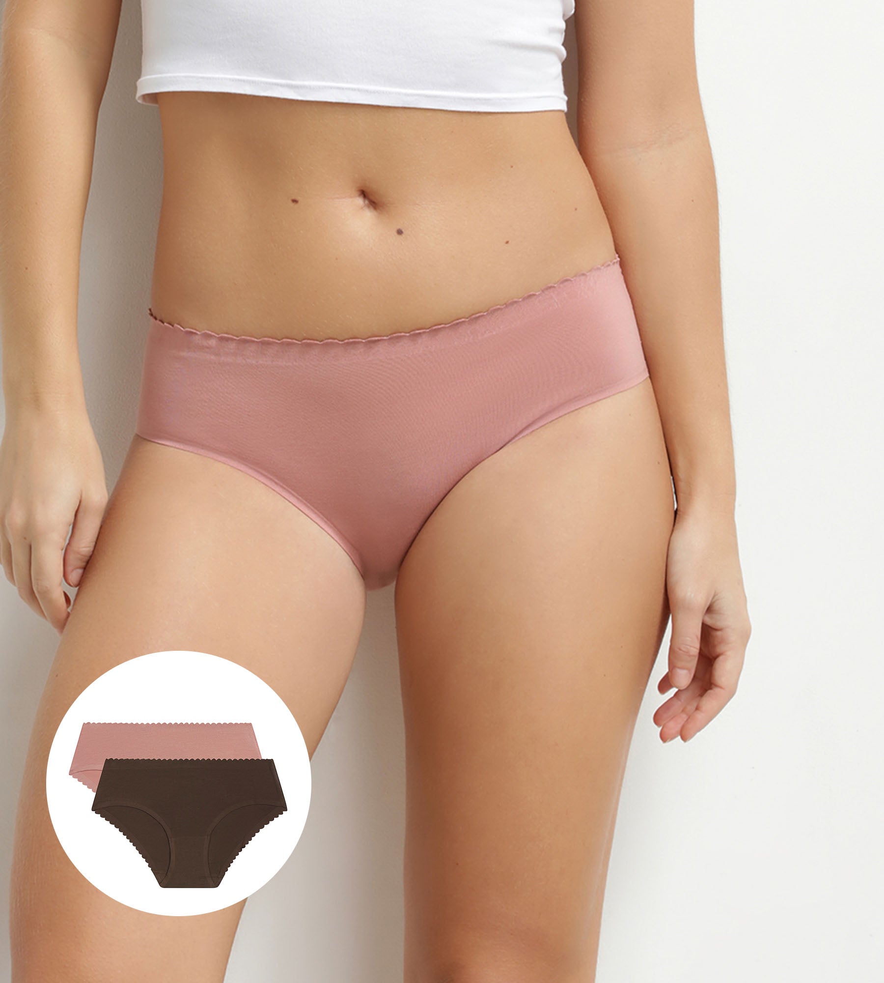 Pacco da 2 slip da donna in cotone elasticizzato Marrone Rosa Body Touch