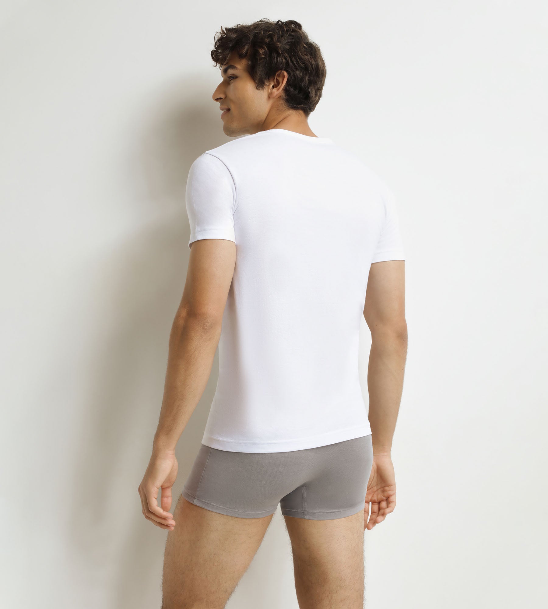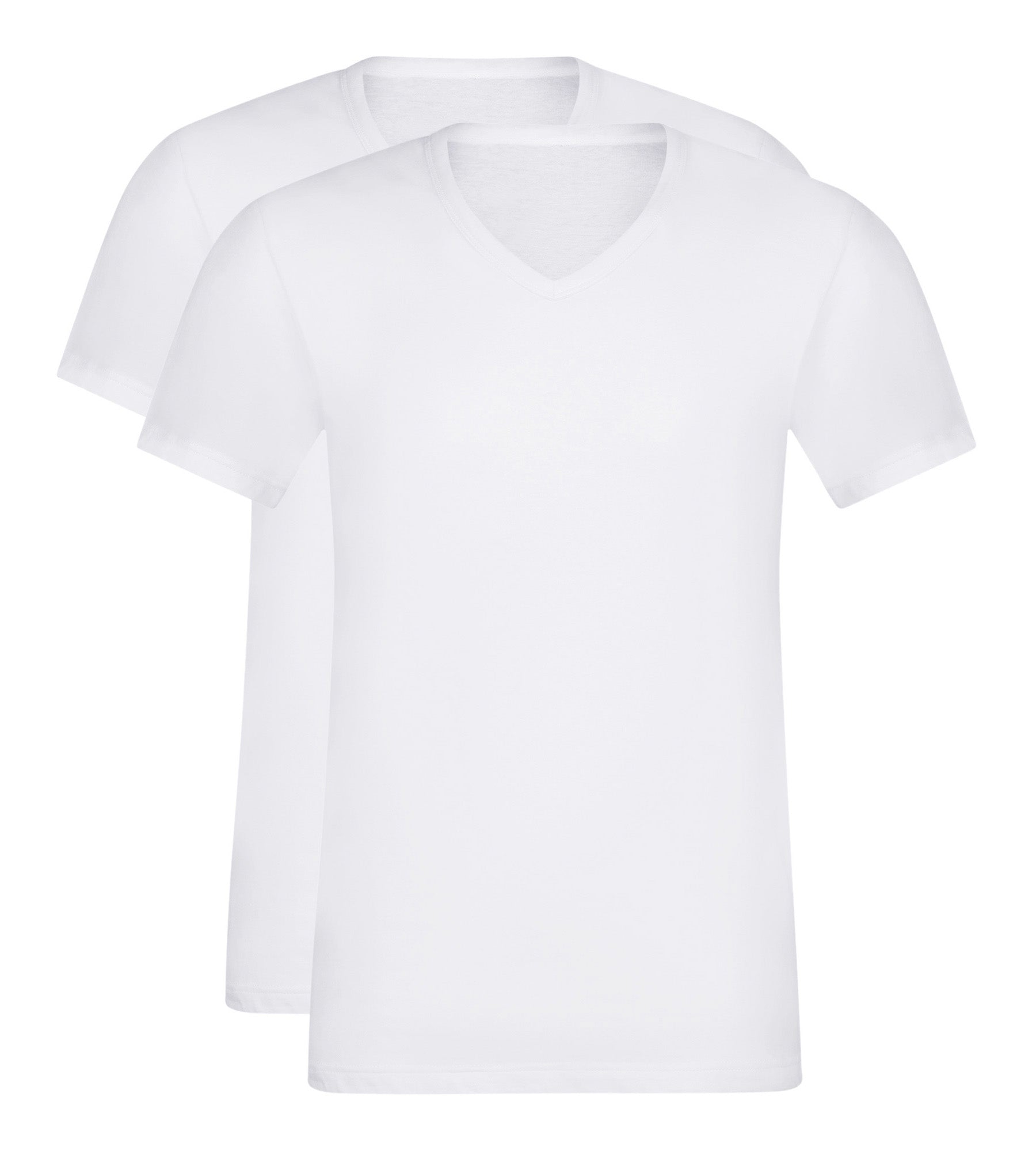 Un look elegante e senza sforzo con questo set di 2 t-shirt da uomo con scollo a V in cotone EcoDim bianco!