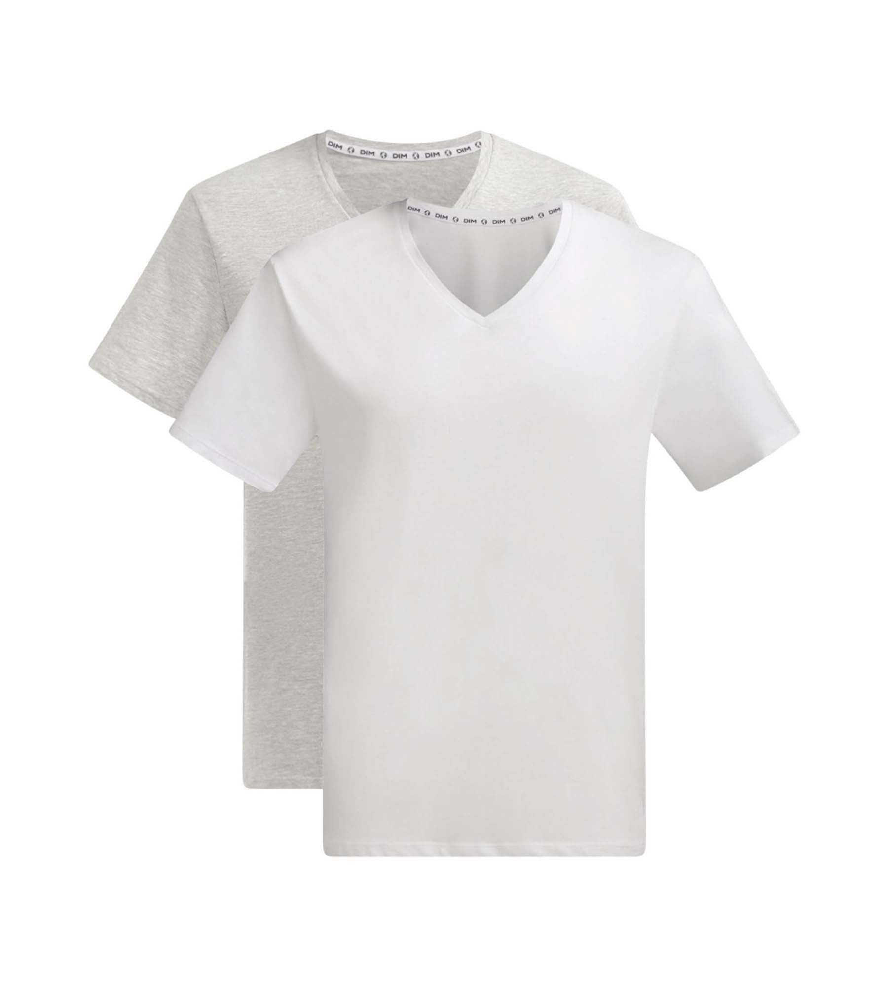 Pacco da 2 T-shirt uomo grigio bianco in cotone bio con scollo a V Dim Good