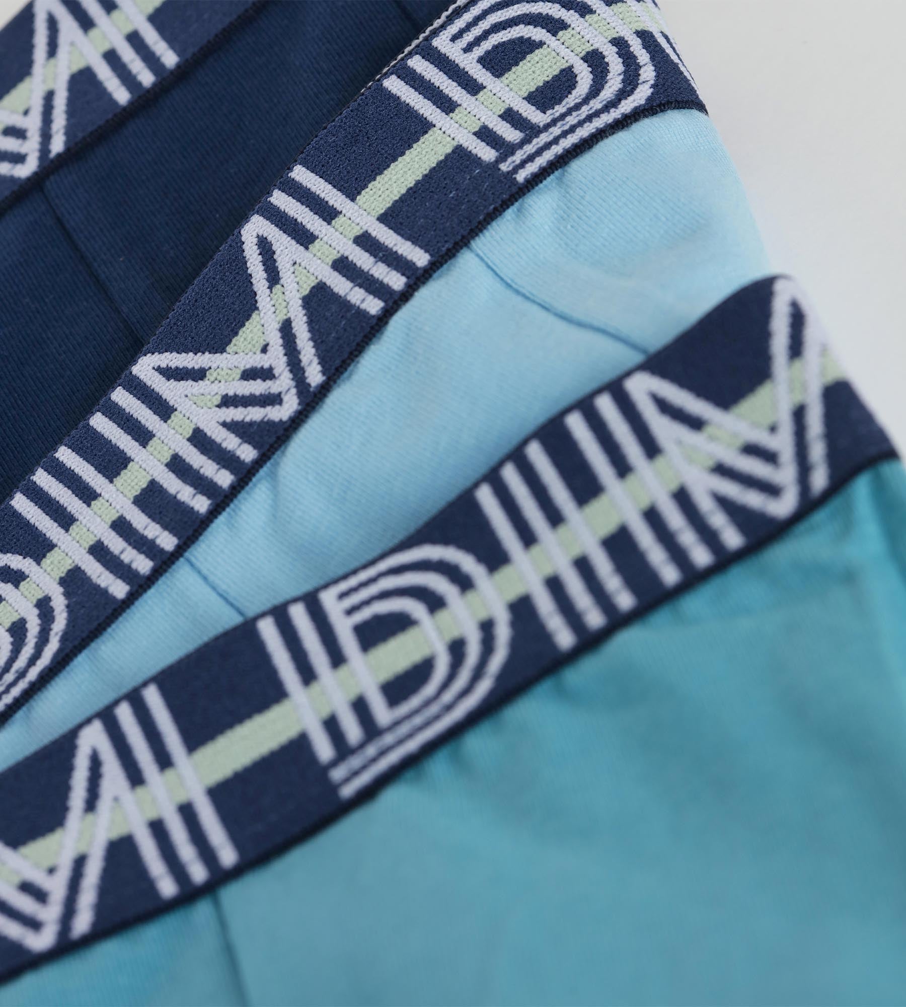 Il lotto Adriatique è realizzato in cotone elasticizzato leggero e resistente, perfetto per accompagnare i ragazzi attivi. I tre boxer per bambini adottano una palette nautica per un look attuale e sobrio. La linea avvolgente e aderente garantisce una buona vestibilità, mentre la fodera frontale assicura un buon sostegno. L’ampia cintura, caratterizzata da un logo Dim ben visibile, aggiunge un tocco grafico che i ragazzi adorano.