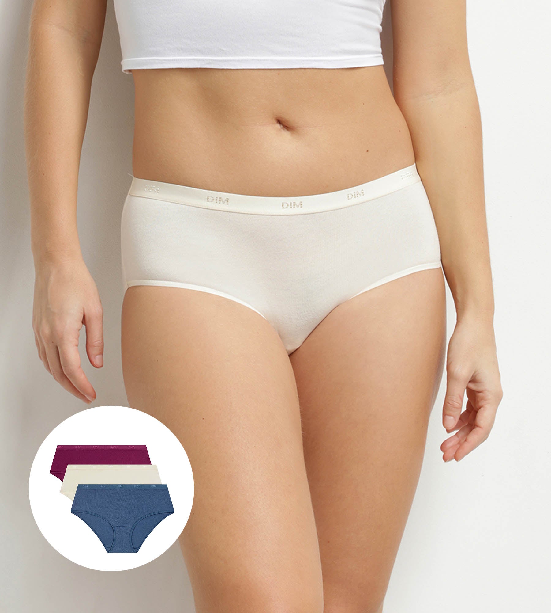 Scegli un’eleganza discreta con questo pacco da 3 boxer da donna Les Pockets Ecodim in cotone elasticizzato nelle raffinate tonalità blu, crema e rosa.
