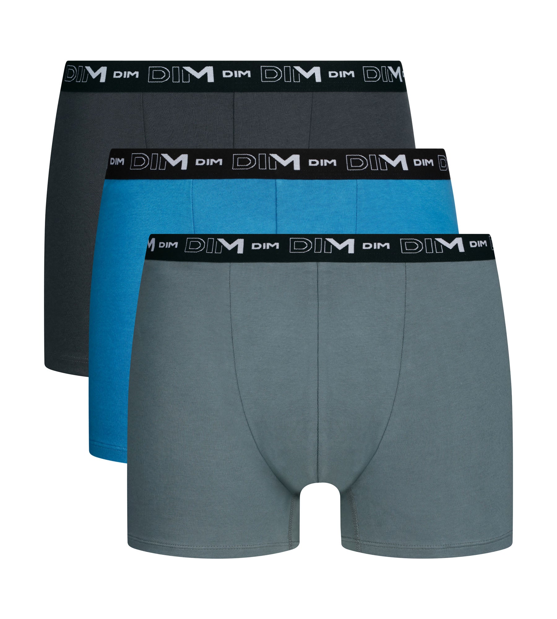 Scegli uno stile curato con il lotto di 3 boxer da uomo Dim Coton Stretch Elegant in cotone elasticizzato blu e tonalità raffinate.
