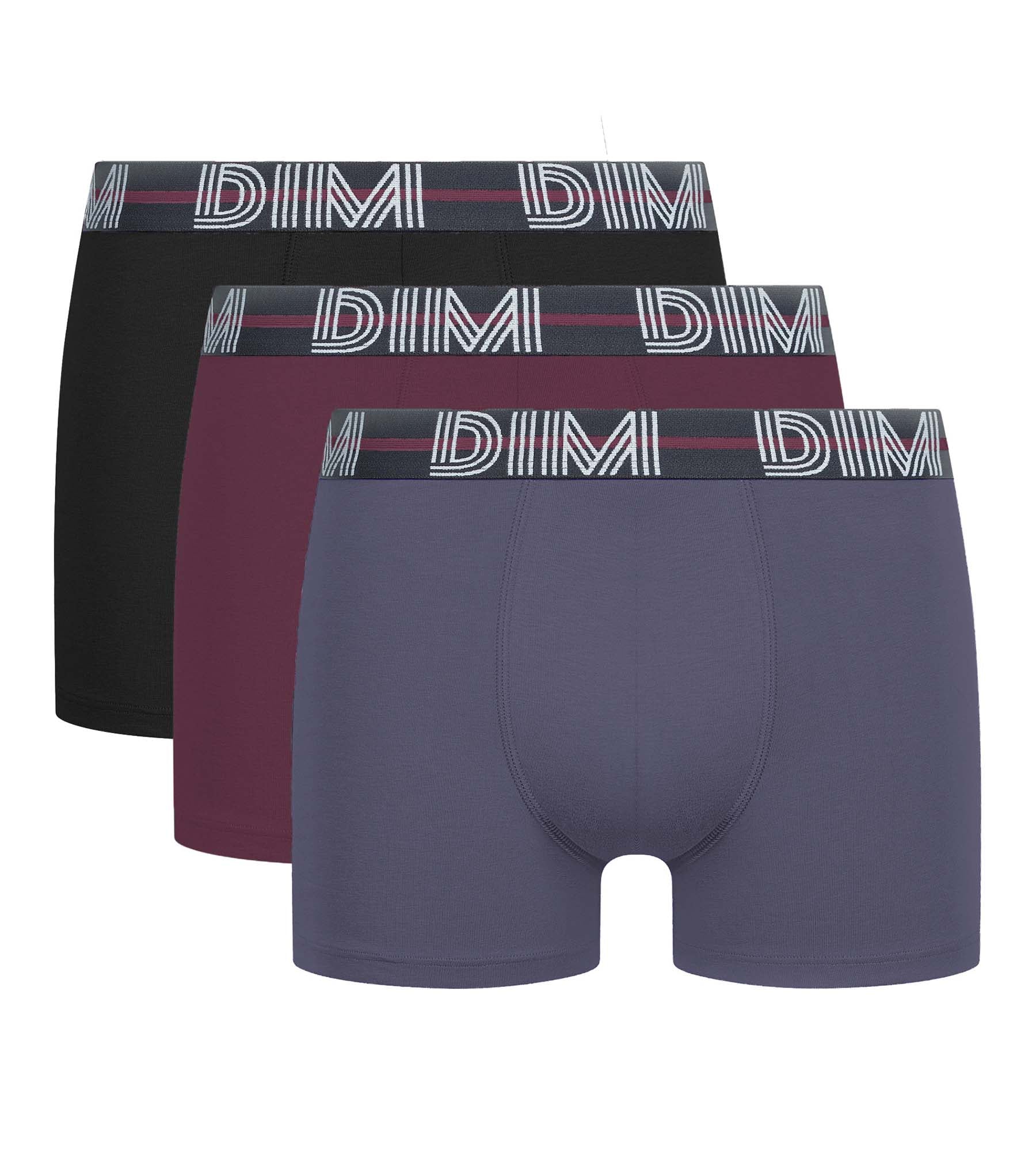 Adotta un look forte e vivace con il set di boxer da uomo Dim Powerful in cotone elasticizzato nero, rosso Merlot e blu Indaco!
