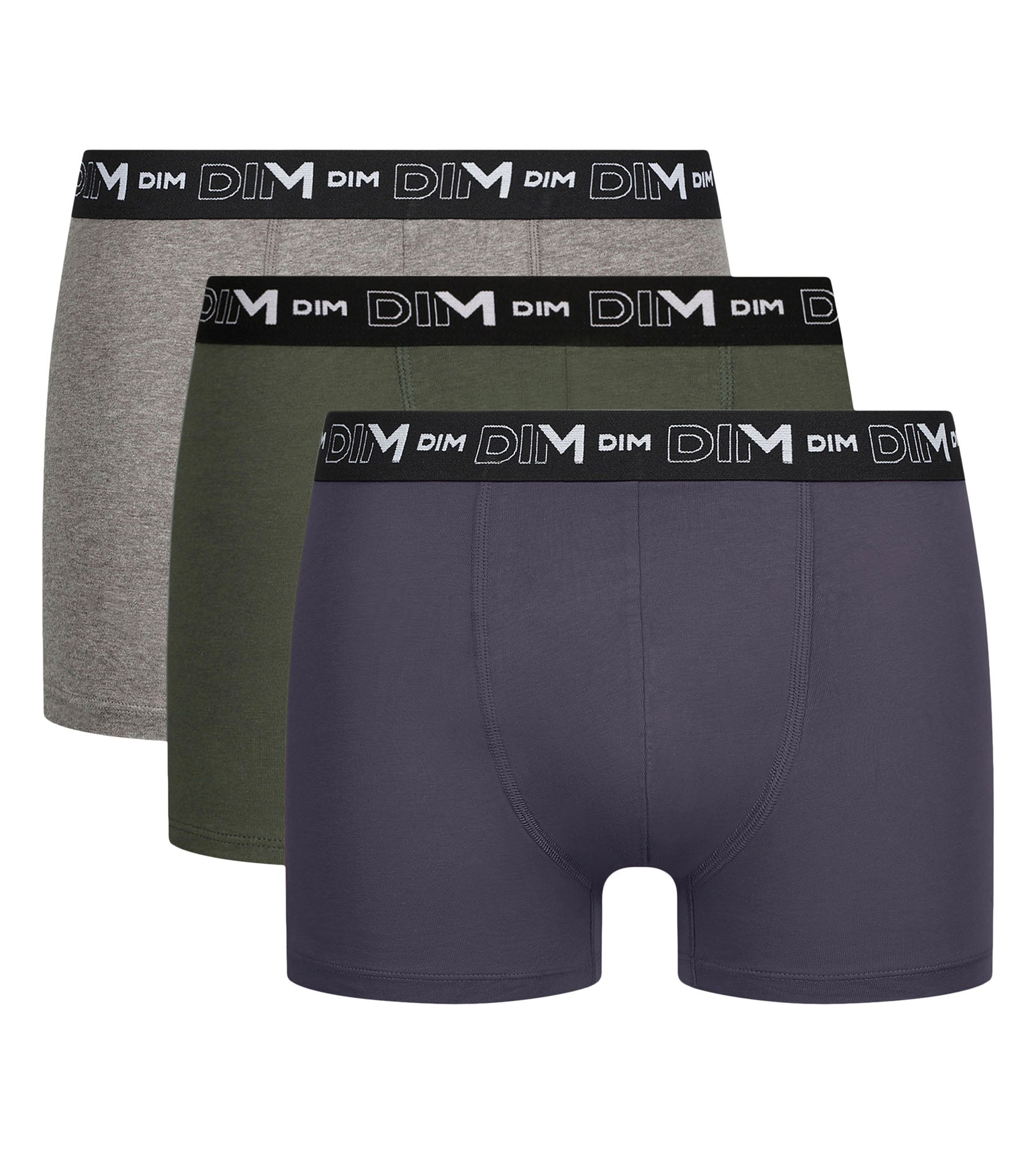 Trova l’essenziale con il lotto di 3 boxer da uomo Dim Coton Stretch Terrien in morbida maglia e tinte ispirate agli elementi.