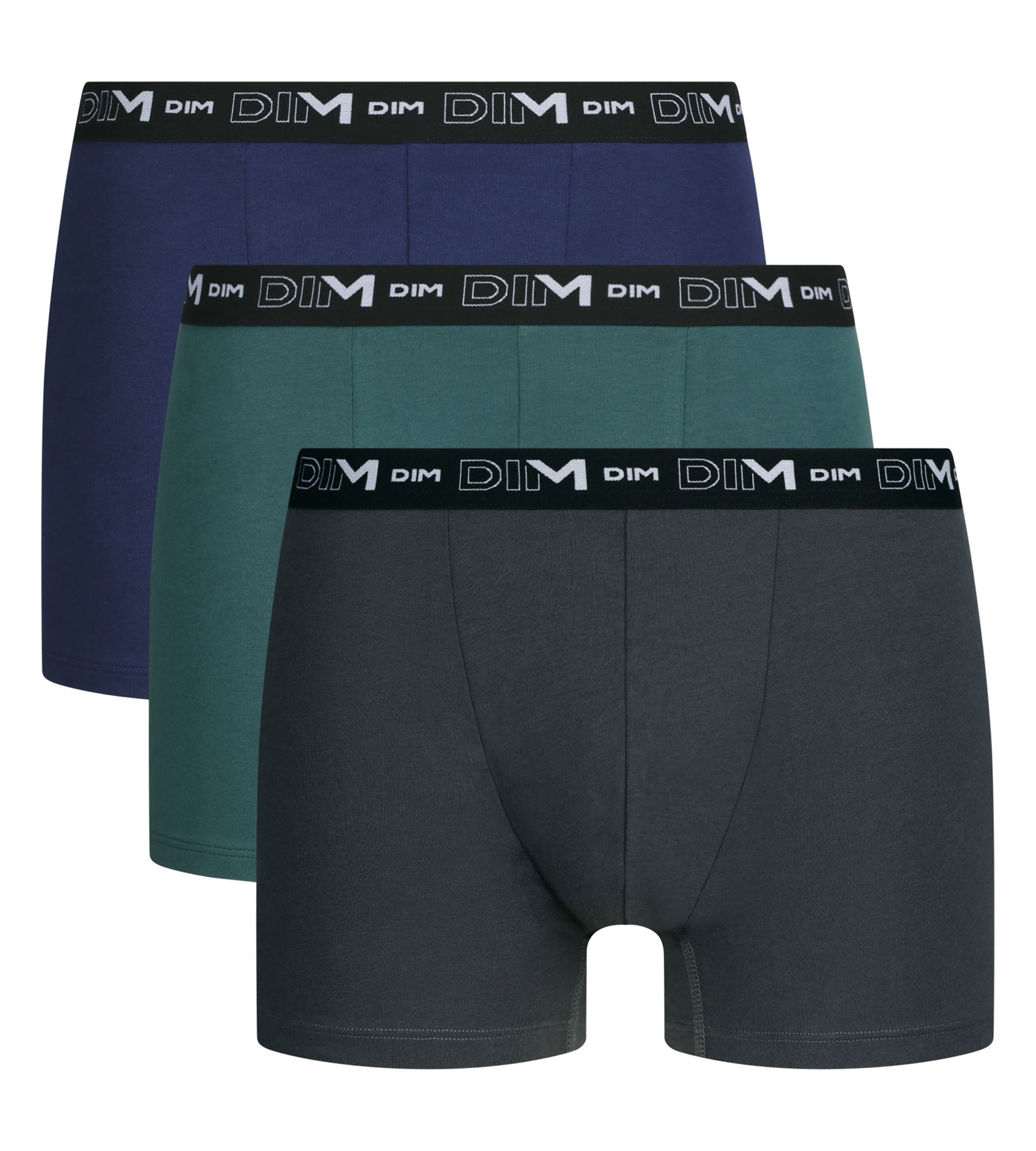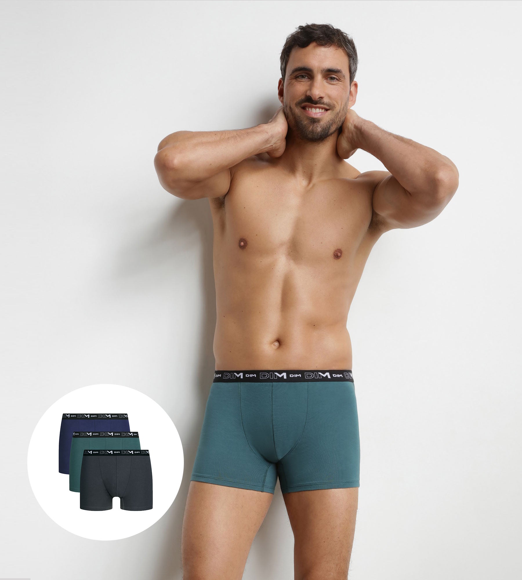 Ravviva la tua quotidianità con il lotto di 3 boxer da uomo Dim Coton Stretch Chic dalle tonalità eleganti.
