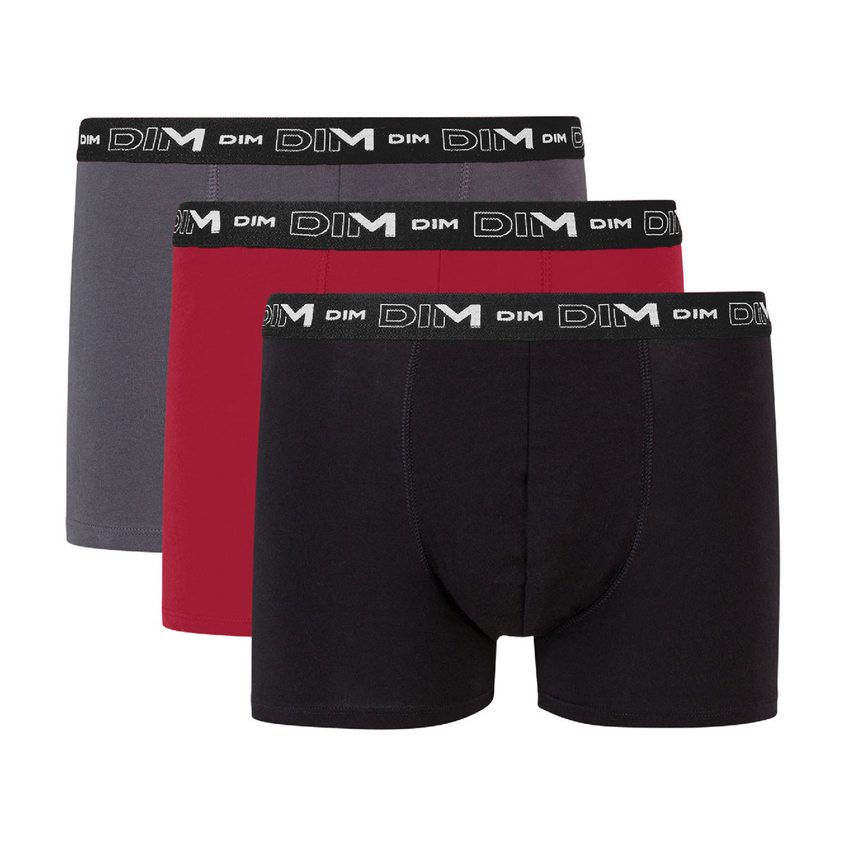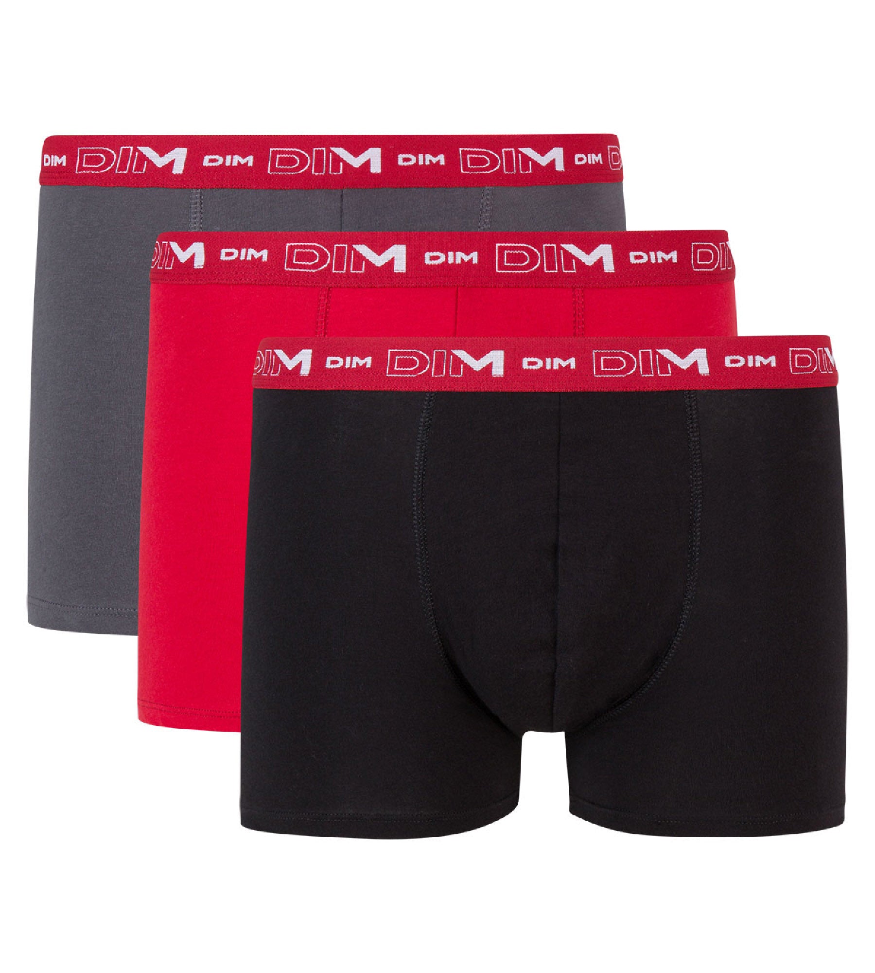 Lasciati coinvolgere dai colori della stagione con questo set di 3 boxer in cotone elasticizzato grigio piombo, rosso peperoncino e nero.