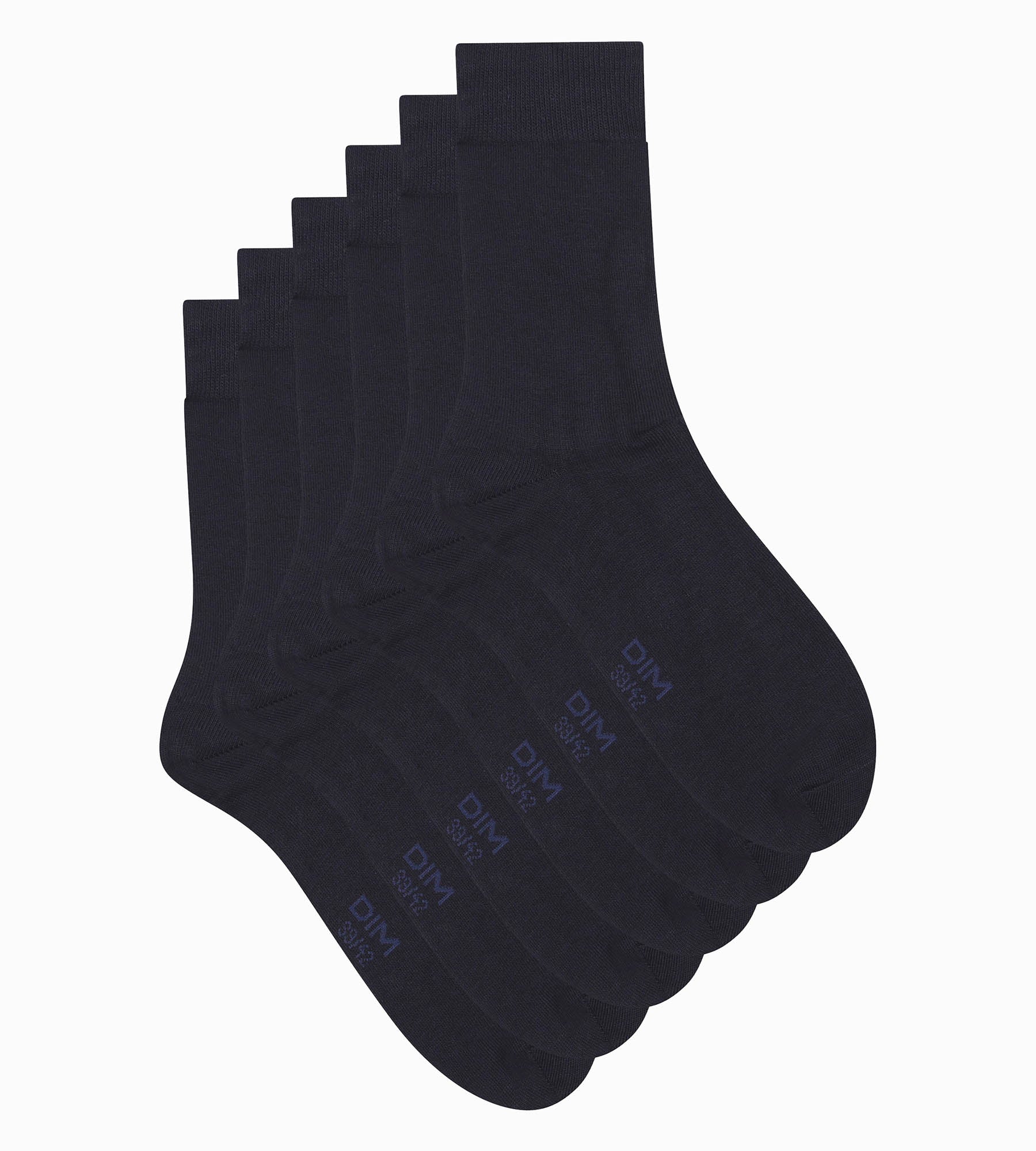 Aggiungi un tocco di eleganza al tuo abbigliamento con questo set di 3 paia di calze-uomo Dim Coton Bleu Marine!