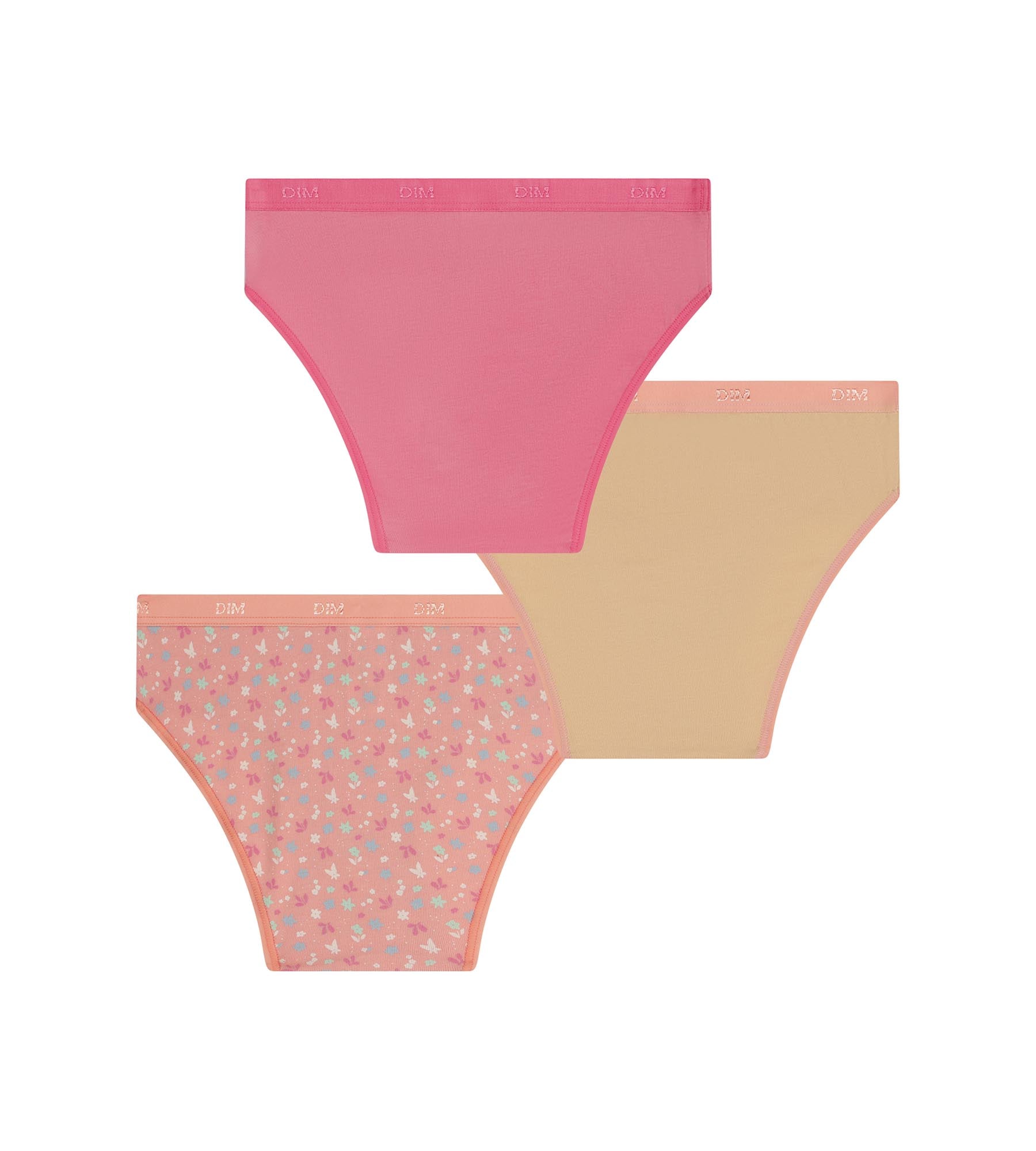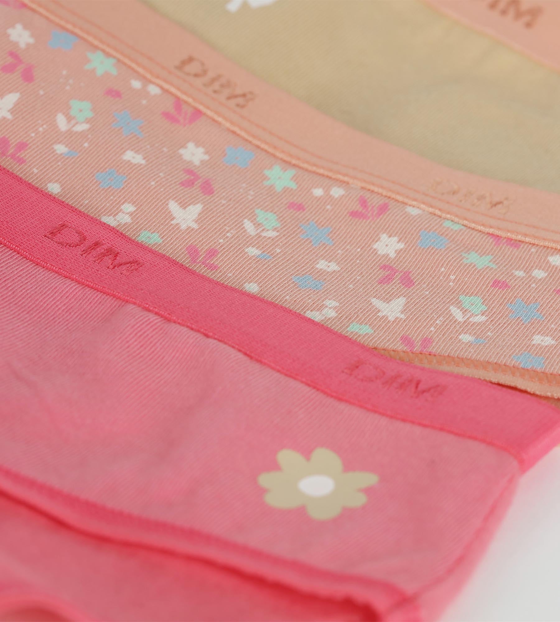Pacco da 3 slip da bambina in cotone elasticizzato con fiori color pesca Les Pockets