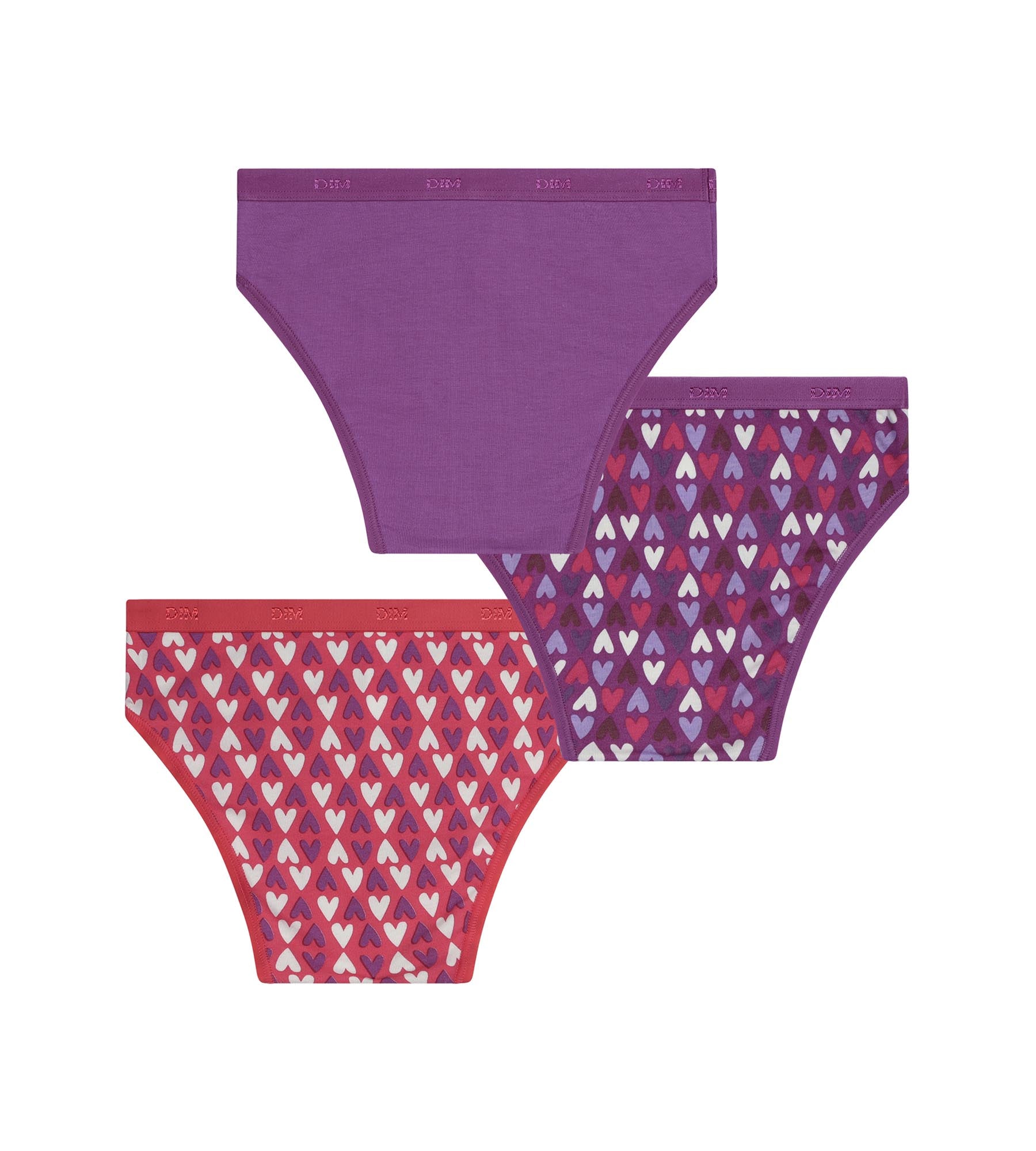 Composto da uno slip da bambina viola tinta unita, una versione prugna ricoperta di cuori bicolori e uno slip rosso brillante cosparso di piccoli cuori a contrasto, questo pacco da slip Dim da bambina Les Pockets punta su uno stile molto artistico. I colori vivaci e le stampe romantiche creano un insieme frizzante, che ravviva il tuo caspaccoto della biancheria intima. Realizzati in cotone elasticizzato, questi modelli offrono una sensazione di morbidezza e una vestibilità regolare, perfetta per uno slip da adolescente pensato per seguire tutte le sue attività.