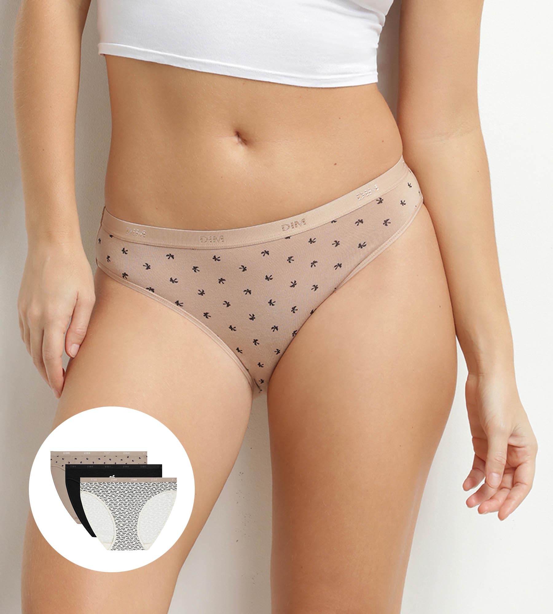 Lasciati conquistare dallo spirito vacanziero del lotto di 3 slip da donna Les Pockets di Dim, decorati con motivi a palme e tonalità naturali.