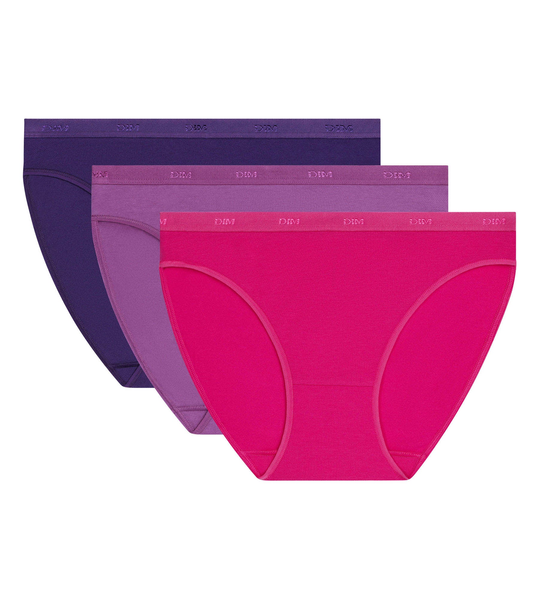 Dai un tocco di vivacità ai tuoi capi essenziali con il lotto di 3 slip da donna Les Pockets EcoDim in cotone elasticizzato viola dai colori vivaci.