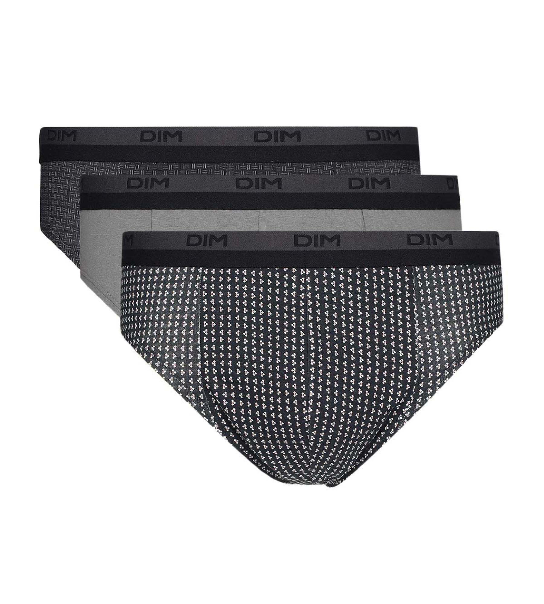 Lasciati conquistare dallo stile stravagante di questo set di 3 slip-uomo in 100% cotone Dim Coton Print Grey con motivi cubici molto grafici!
