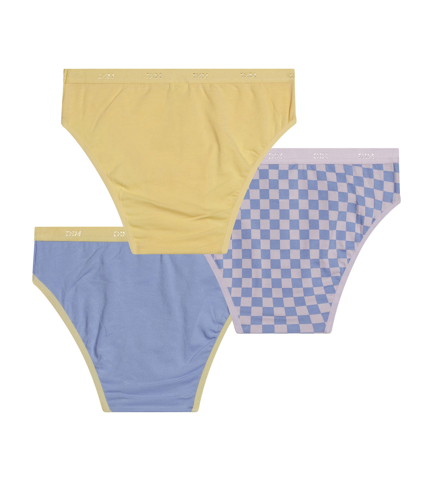 Composto da slip da bambina in tinta unita giallo pastello, mutandine blu con la scritta "Be You" e slip da bambina a parma con stampa a scacchi, il set di 3 slip da bambino Les Pockets è vibrante e dinamico! Con il loro taglio classico in cotone elasticizzato e la finitura piatta, gli slip da bambina Les Pockets sono comodi da indossare ogni giorno.