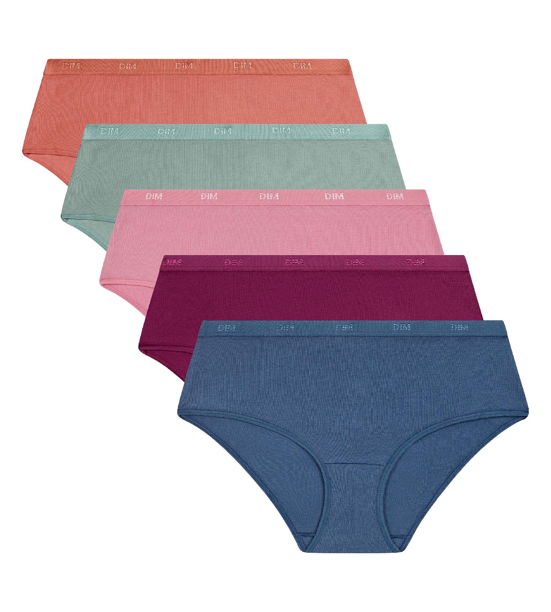 Rinnova i tuoi capi basic con il lotto di 5 boxer da donna in cotone elasticizzato Les Pockets Ecodim, disponibili in una palette di colori rosa e naturali pieni di morbidezza.